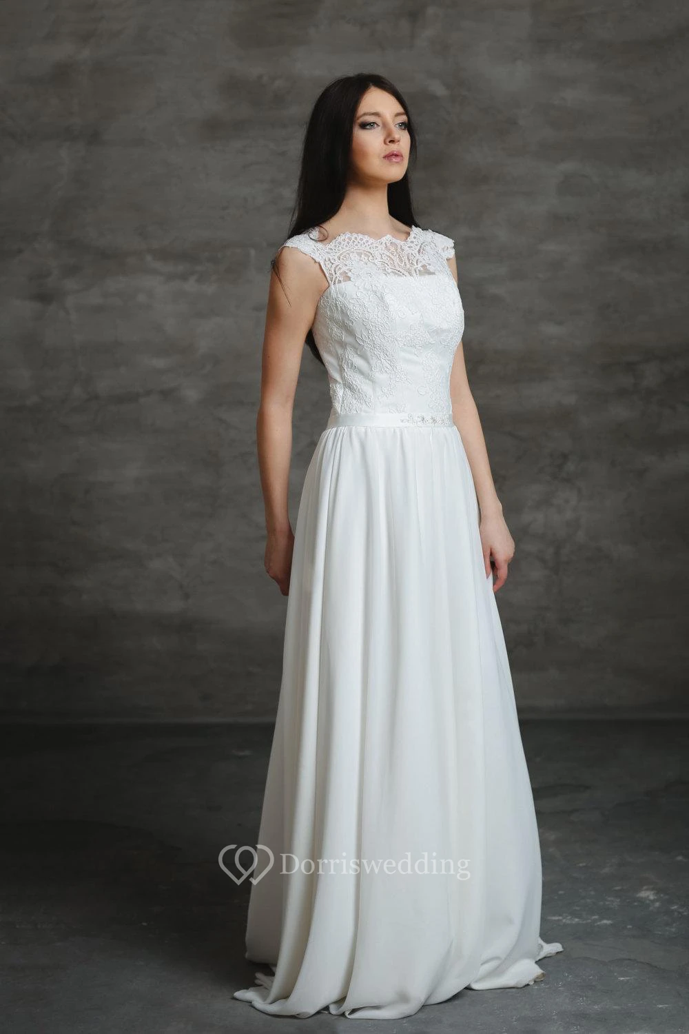 • Hemline/Train: Floor-length, Sweep/Brush Train