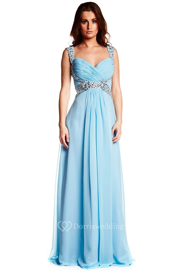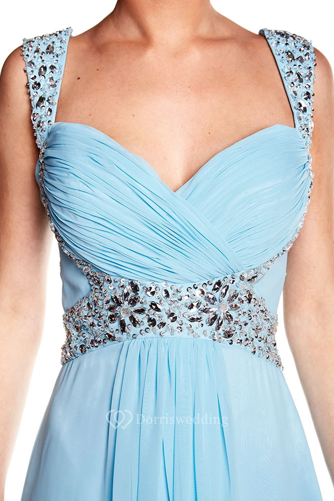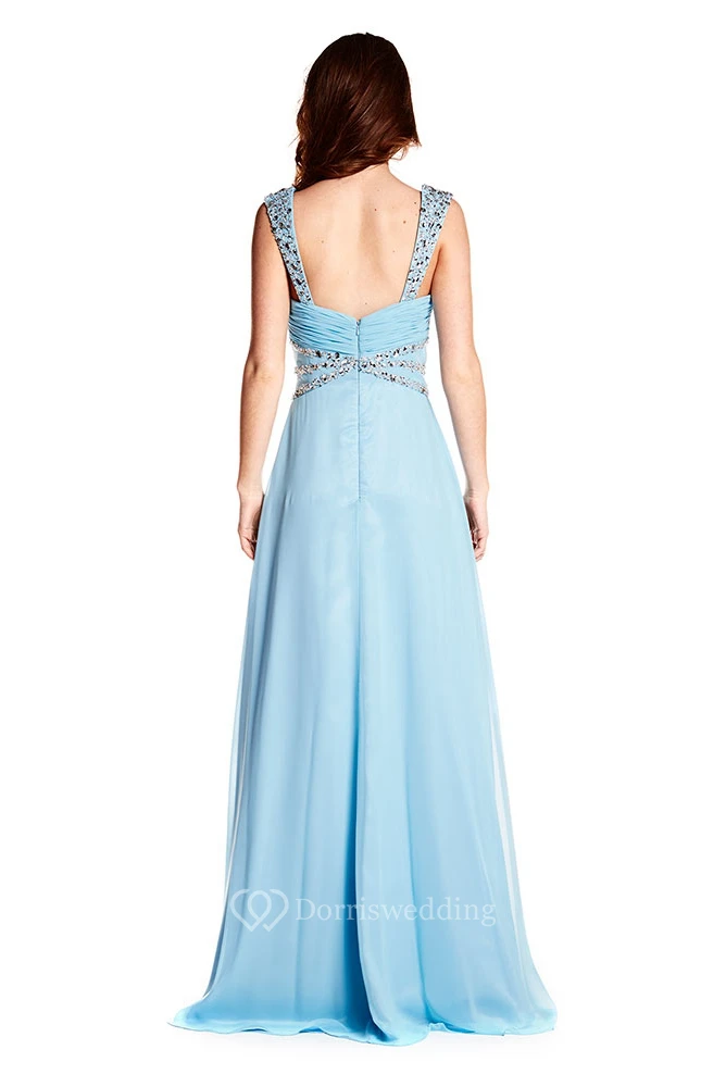 Sleeveless Strapped Criss-Cross Chiffon Prom Dress With Beading