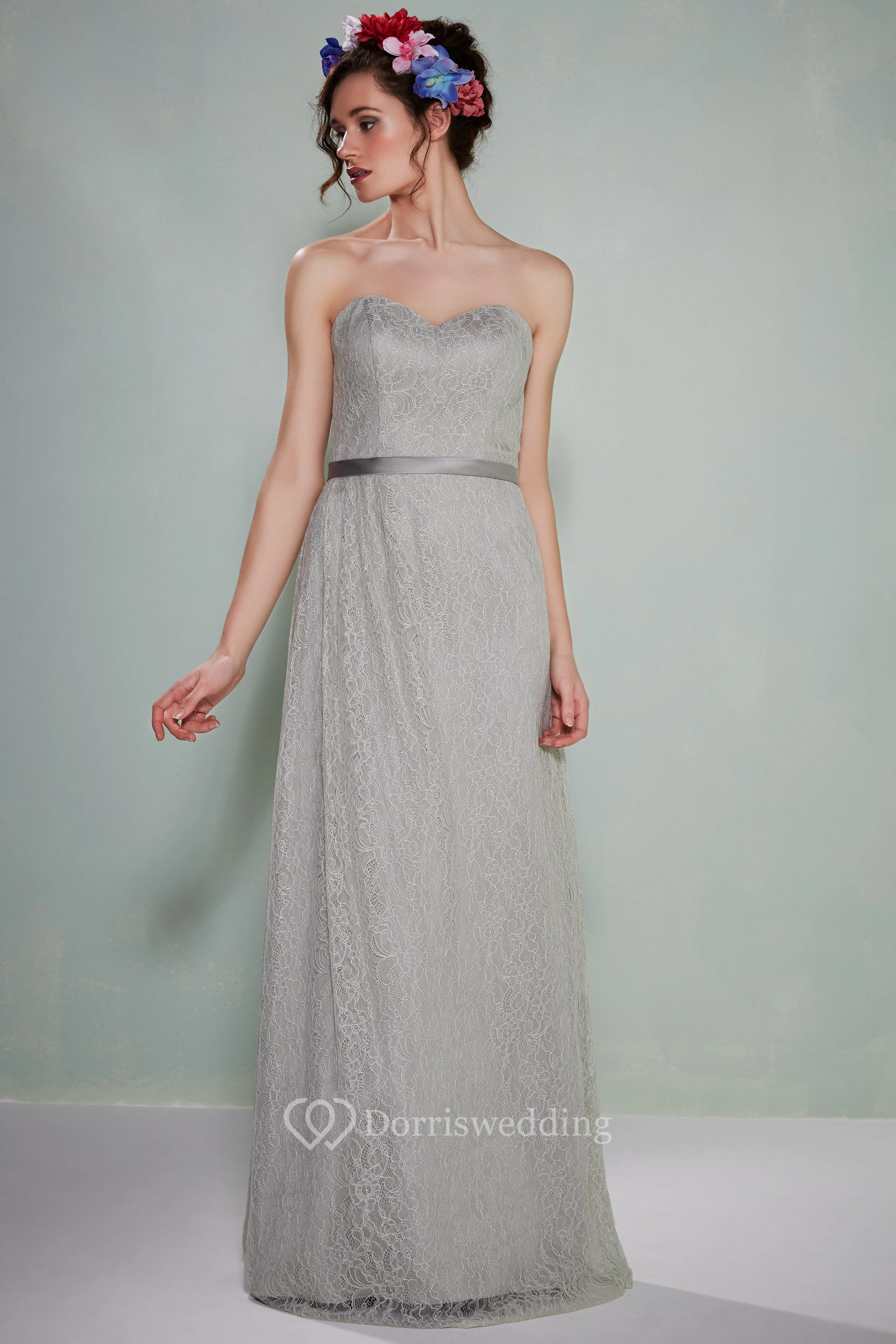 Sleeveless Sweetheart Lace Bridesmaid Dress
