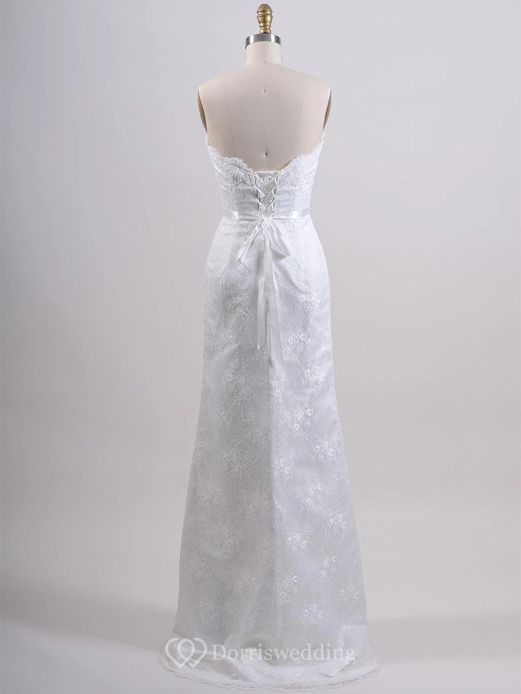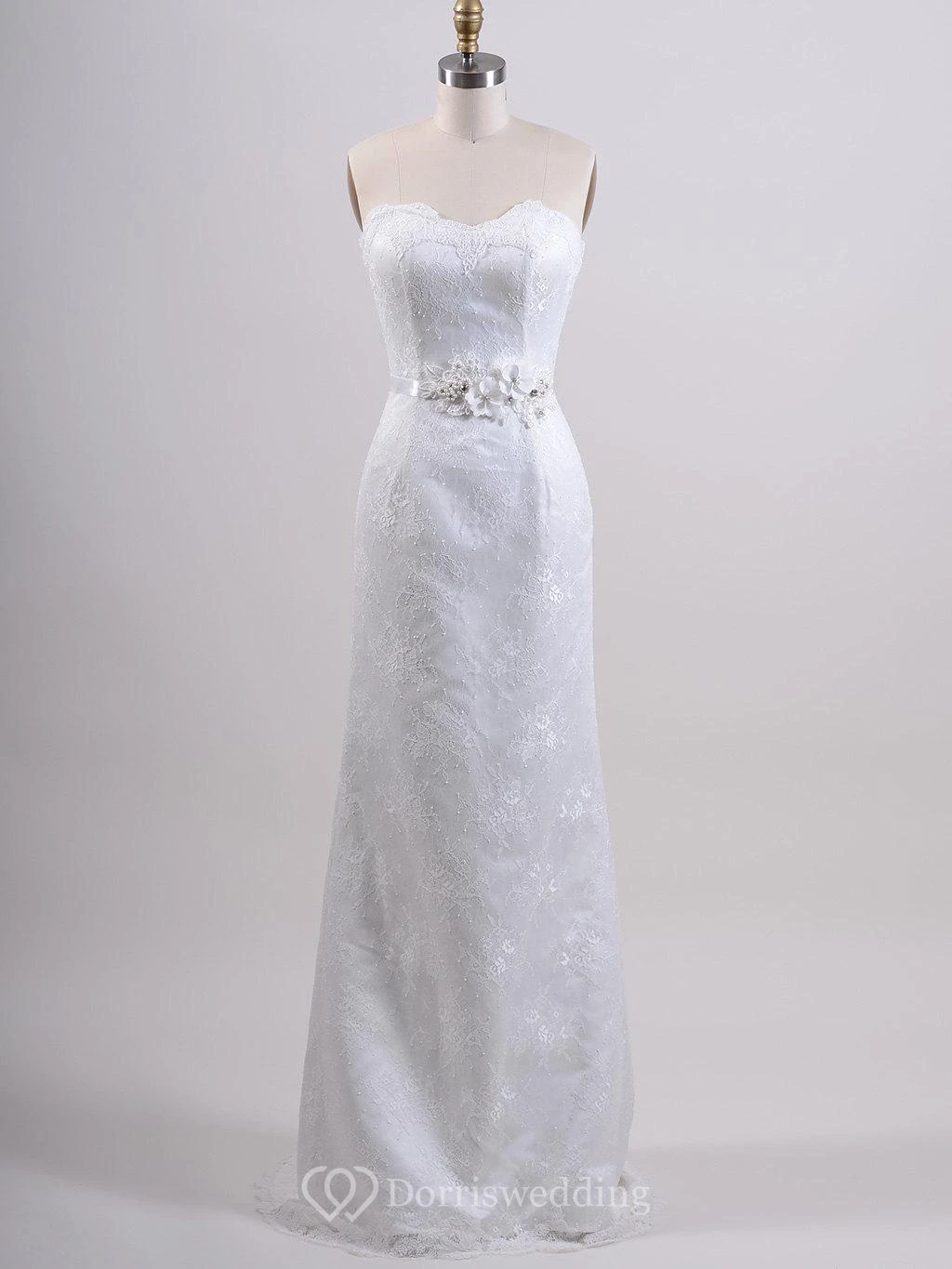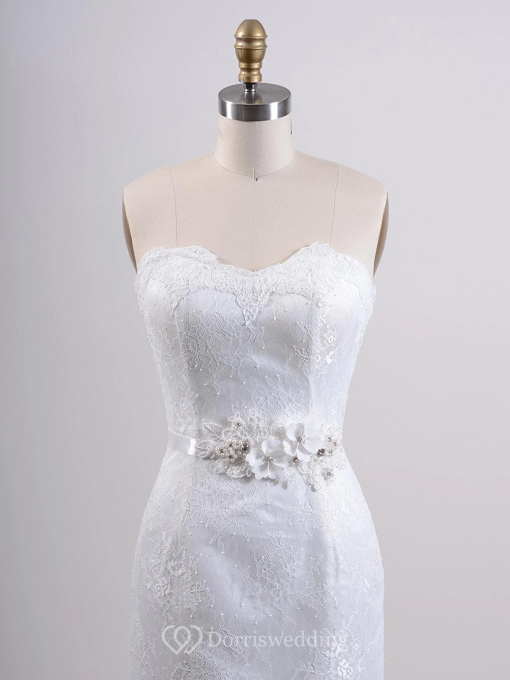 Sleeveless Sweetheart Sheath Lace Dress With Flower Belt and Lace-Up Back