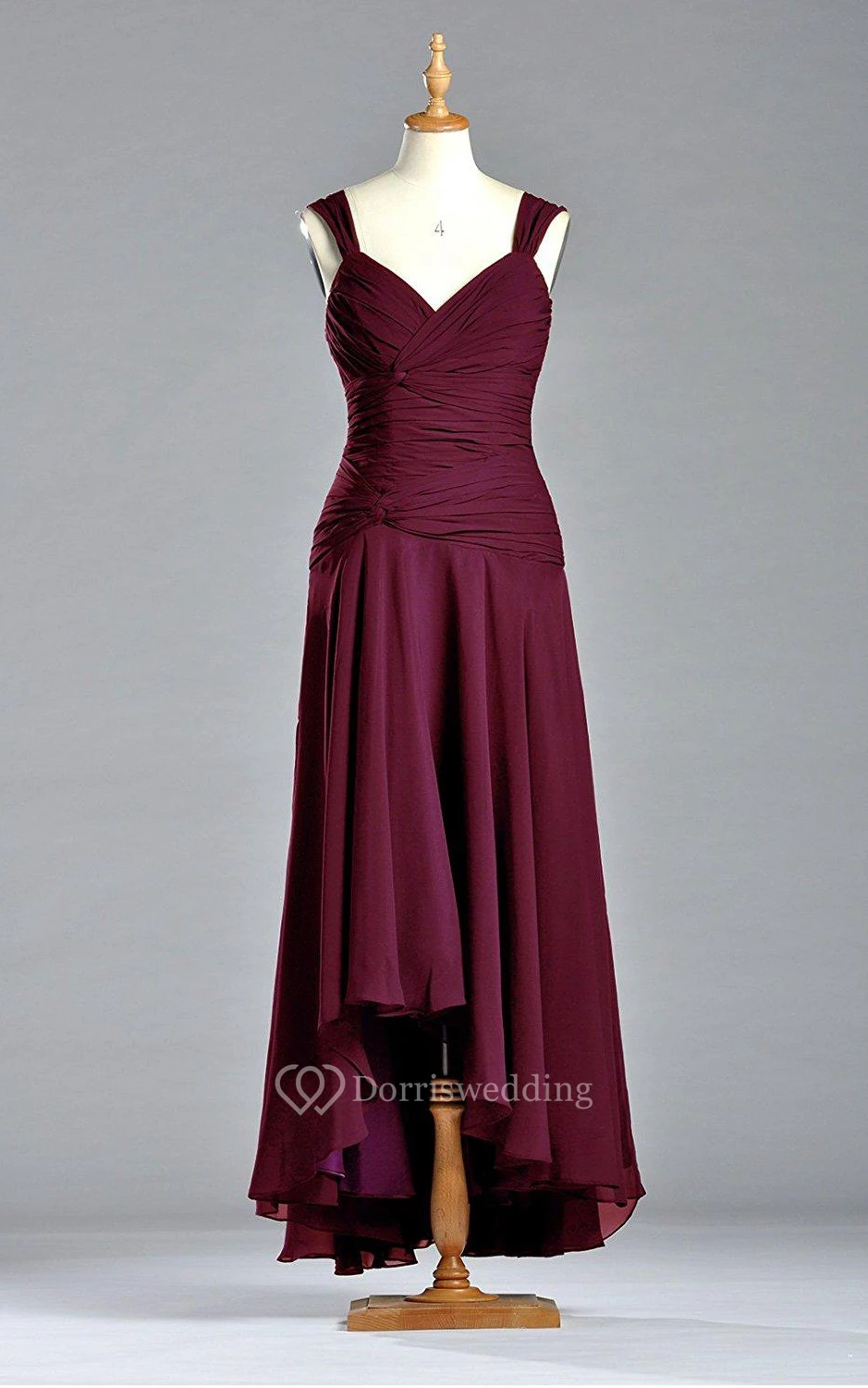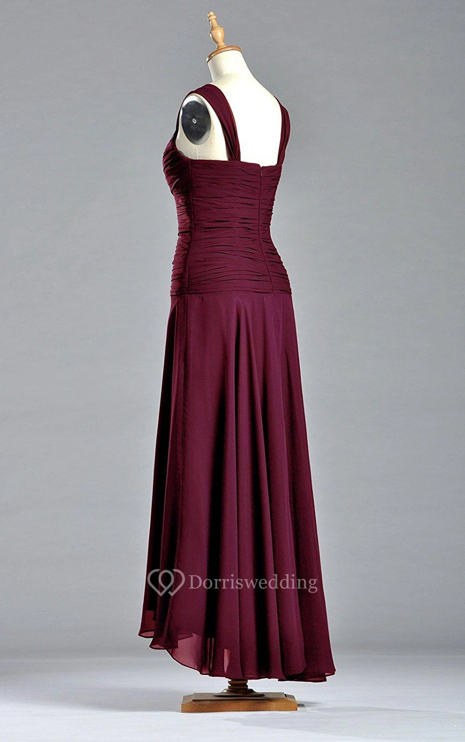 Sleeveless Tea-length Chiffon Dress with V Neckline