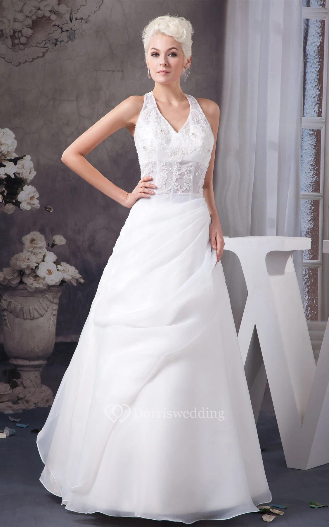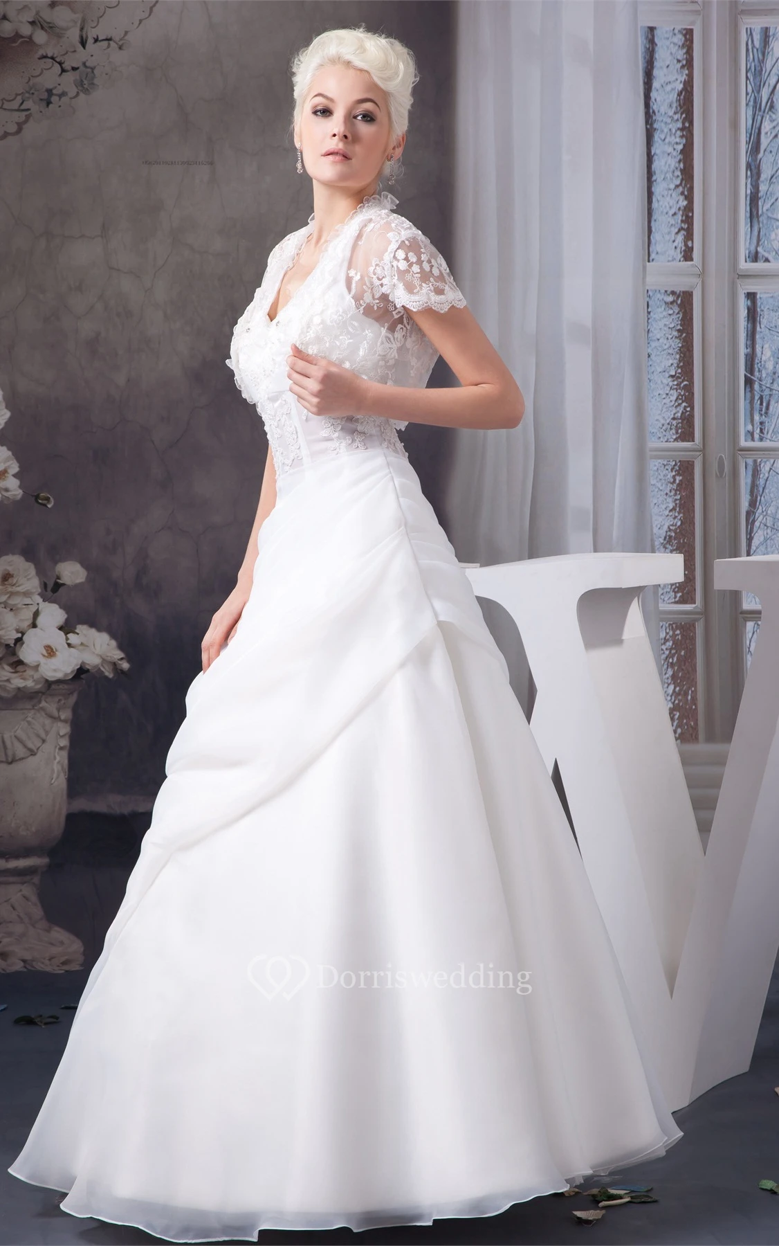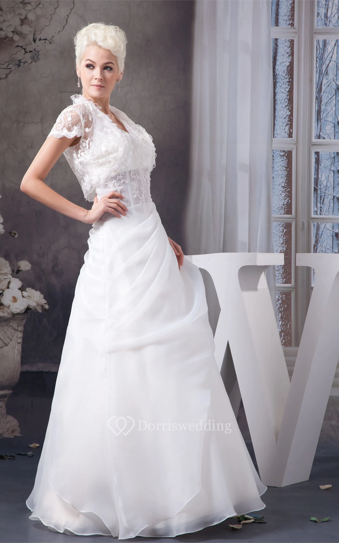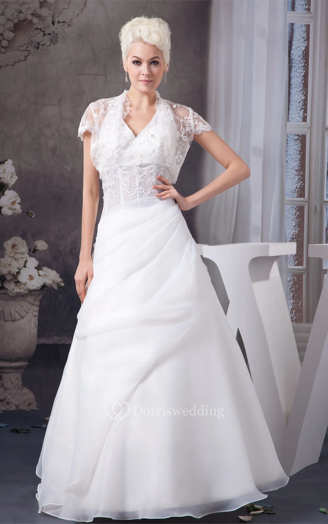Sleeveless Tulle A-Line Bolero and Gown With Appliqued