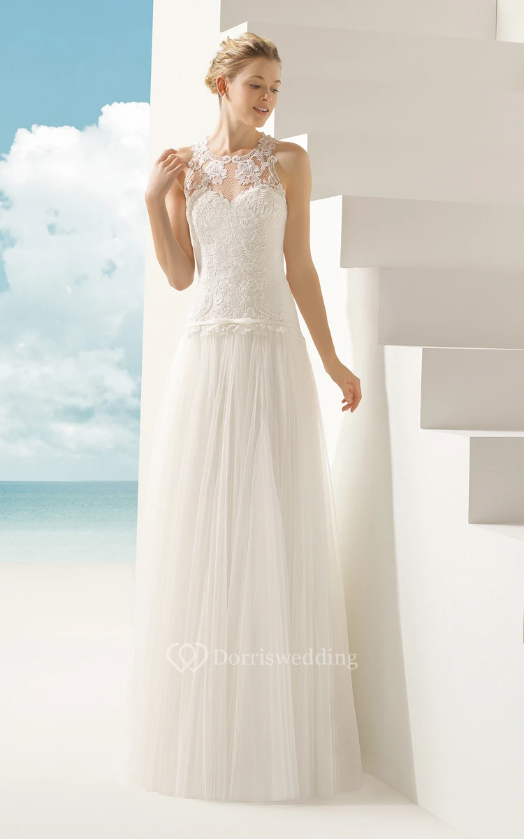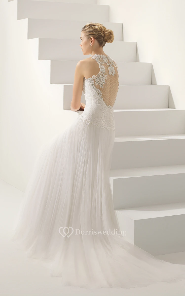Sleeveless Tulle Dress With Illusion Low-V Back And Neck