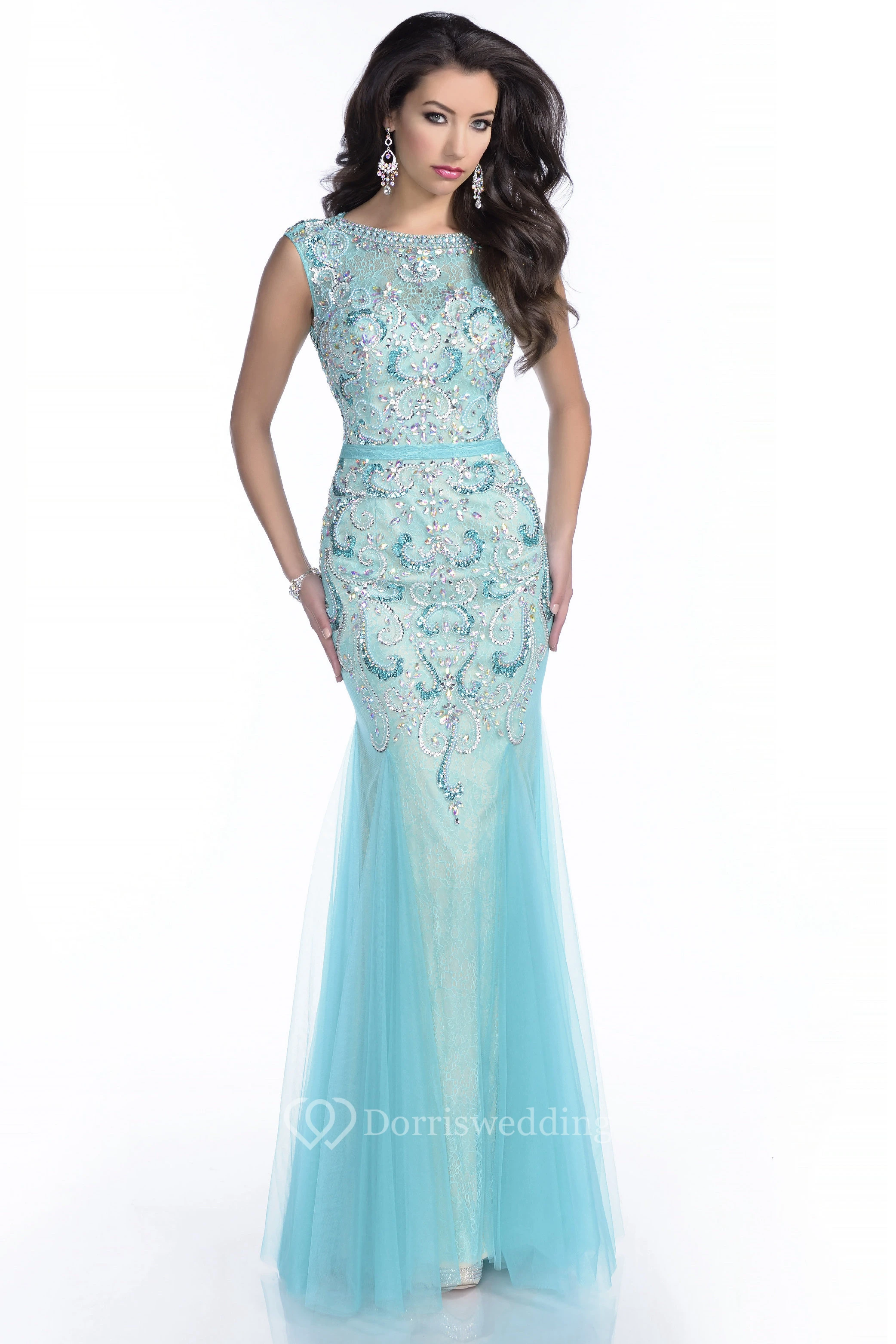 Sleeveless Tulle Mermaid Gown With Keyhole Back And Pearls