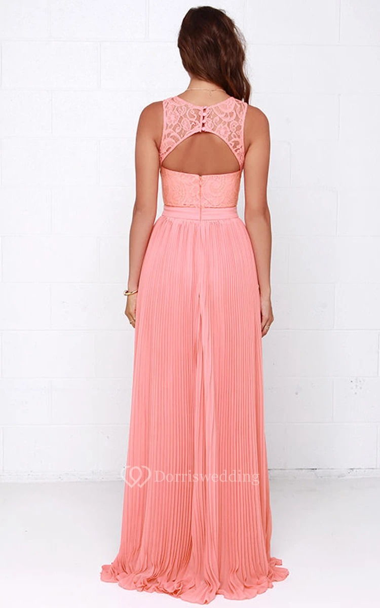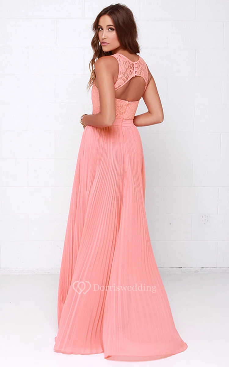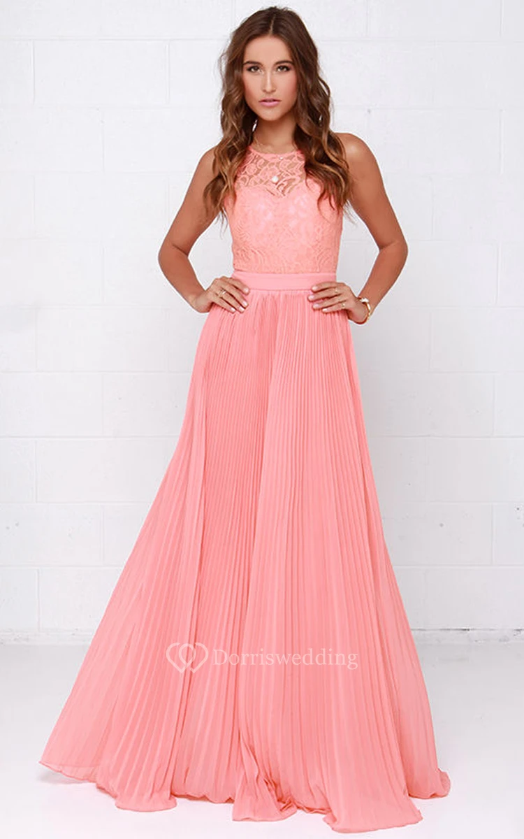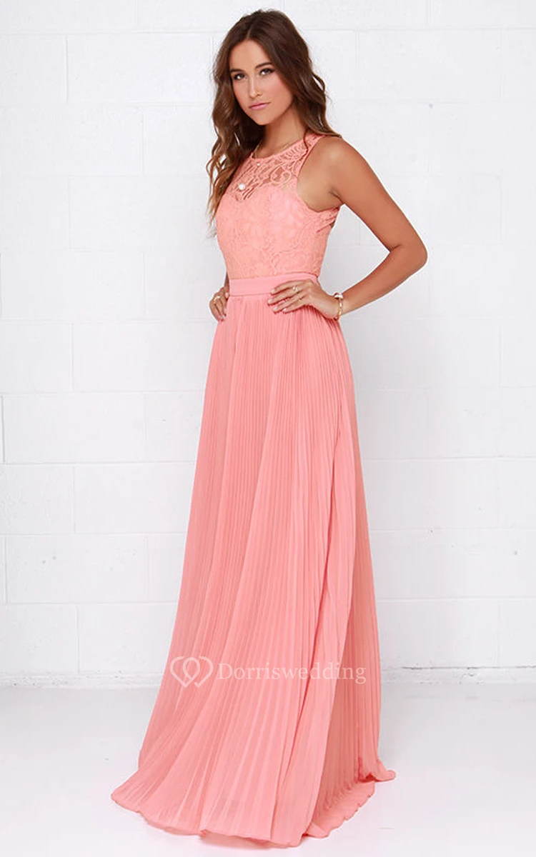 Sleeveless Unique Pleated Gown With Lace Bodice
