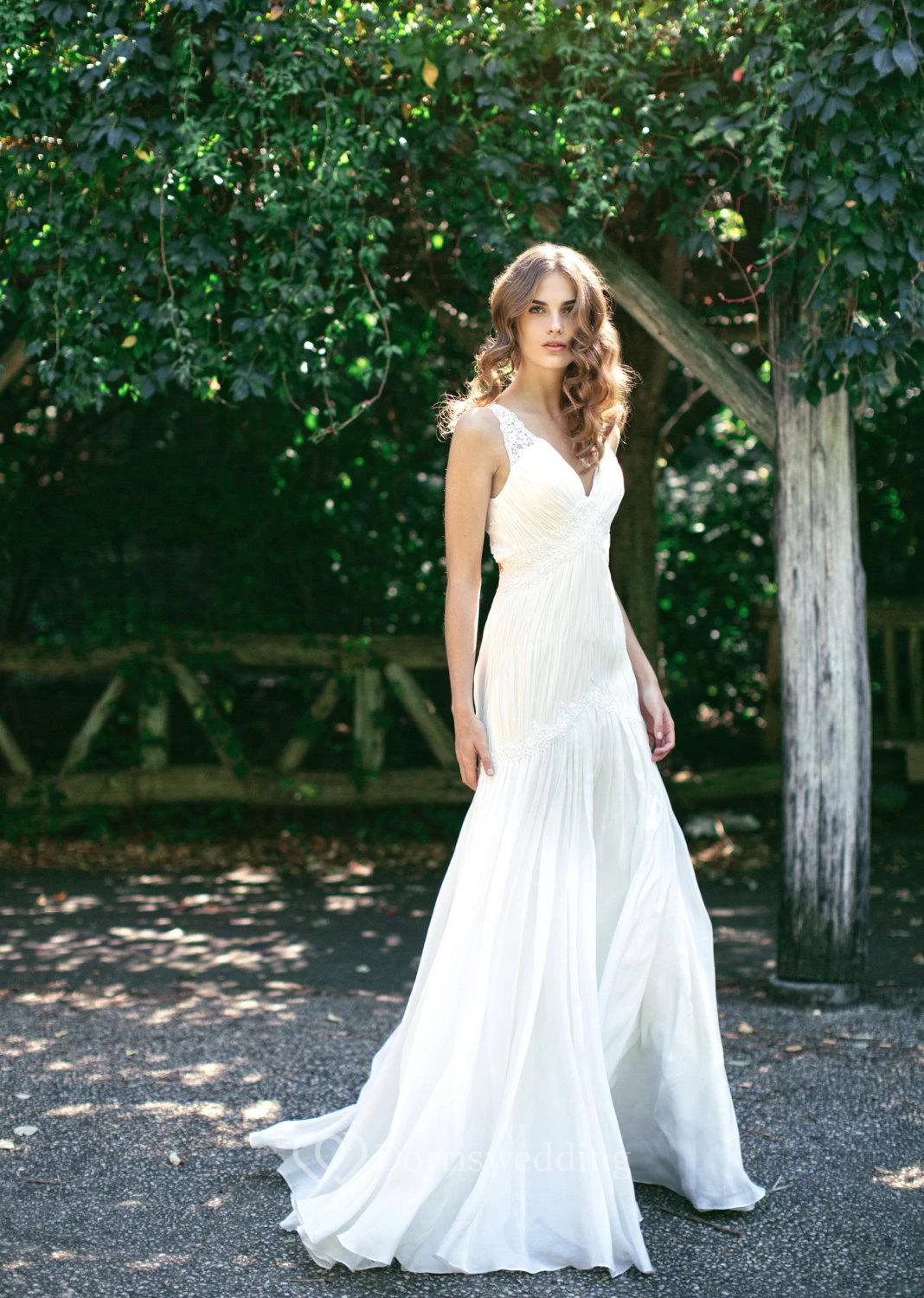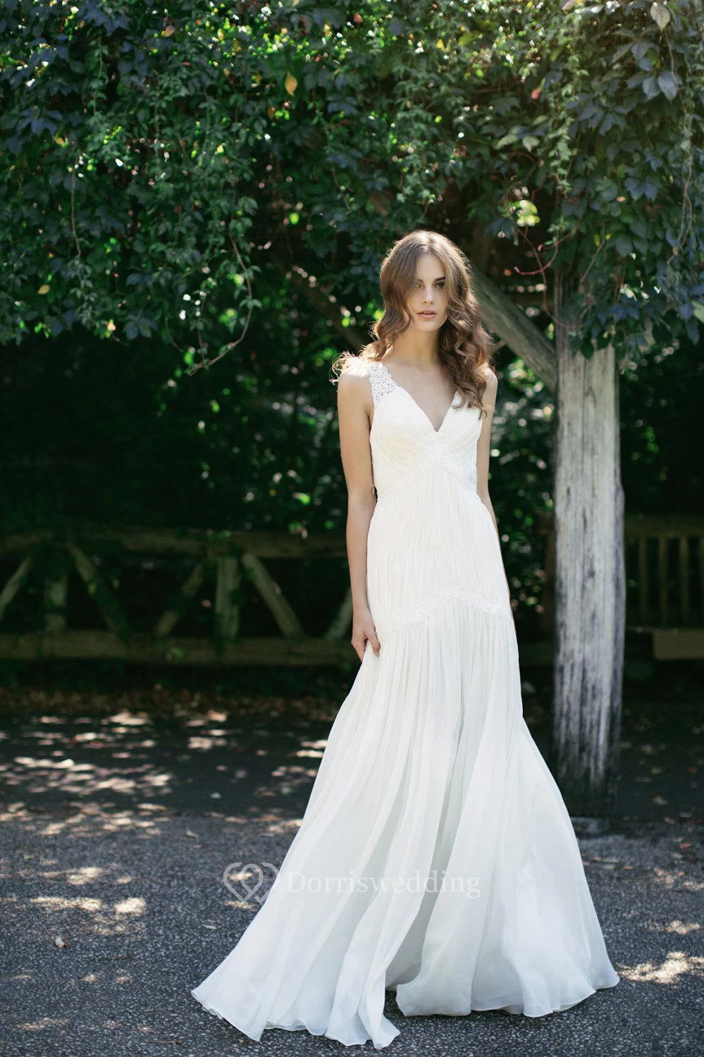 Sleeveless V-Neck A-Line Chiffon Gown With Ruching and Dropped Waist