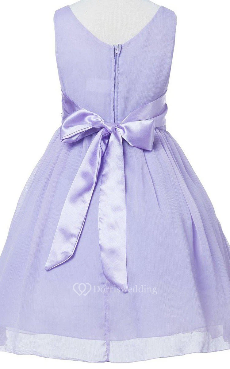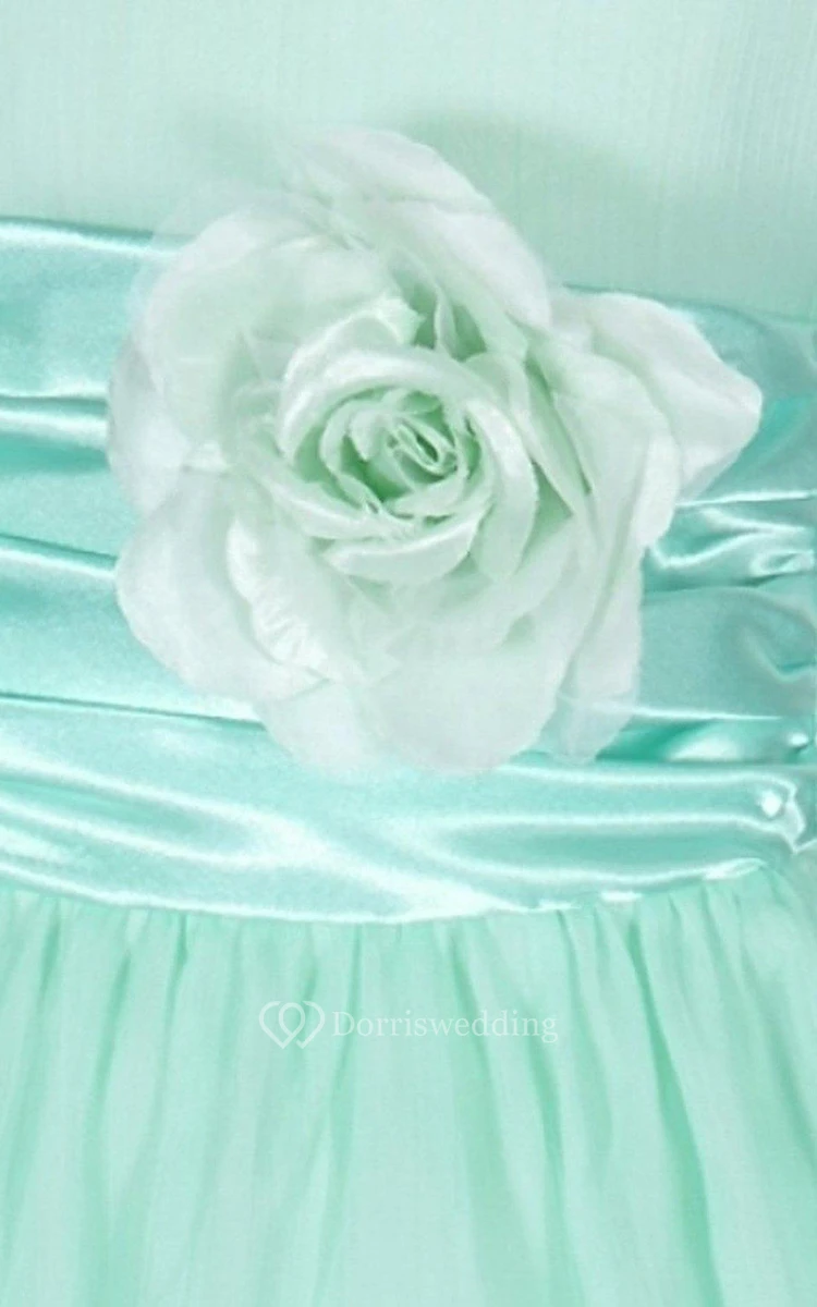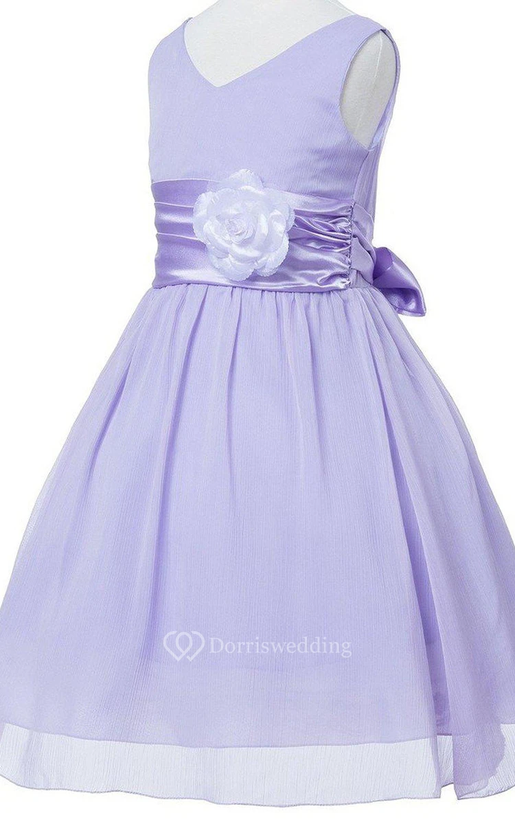 Sleeveless V-neck A-line Dress With Flower and Pleats