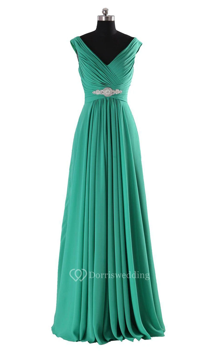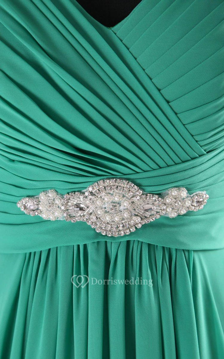 Sleeveless V-neck A-line Dress With Pleats and Beadings