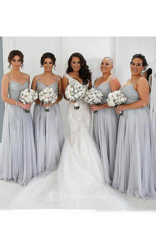 Sleeveless V-neck A-line Long Taffeta Dress with Appliques