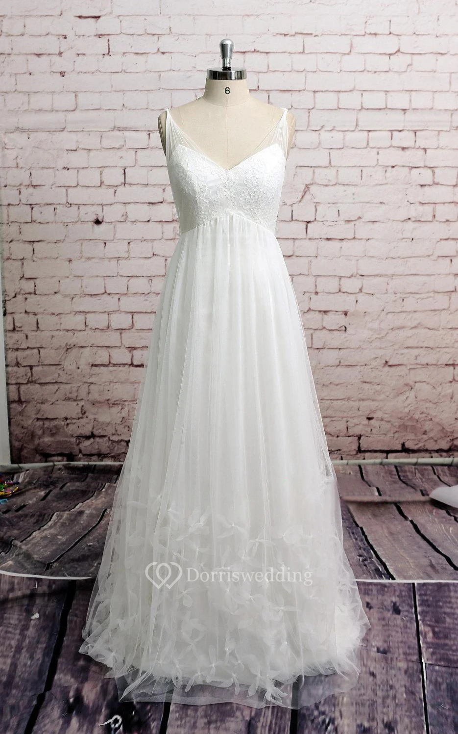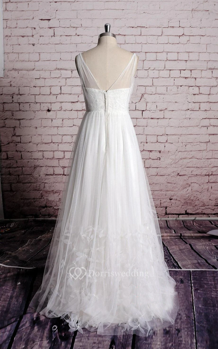 Sleeveless V-Neck A-Line Tulle Dress With Lace Bodice and Skirt Ruffles