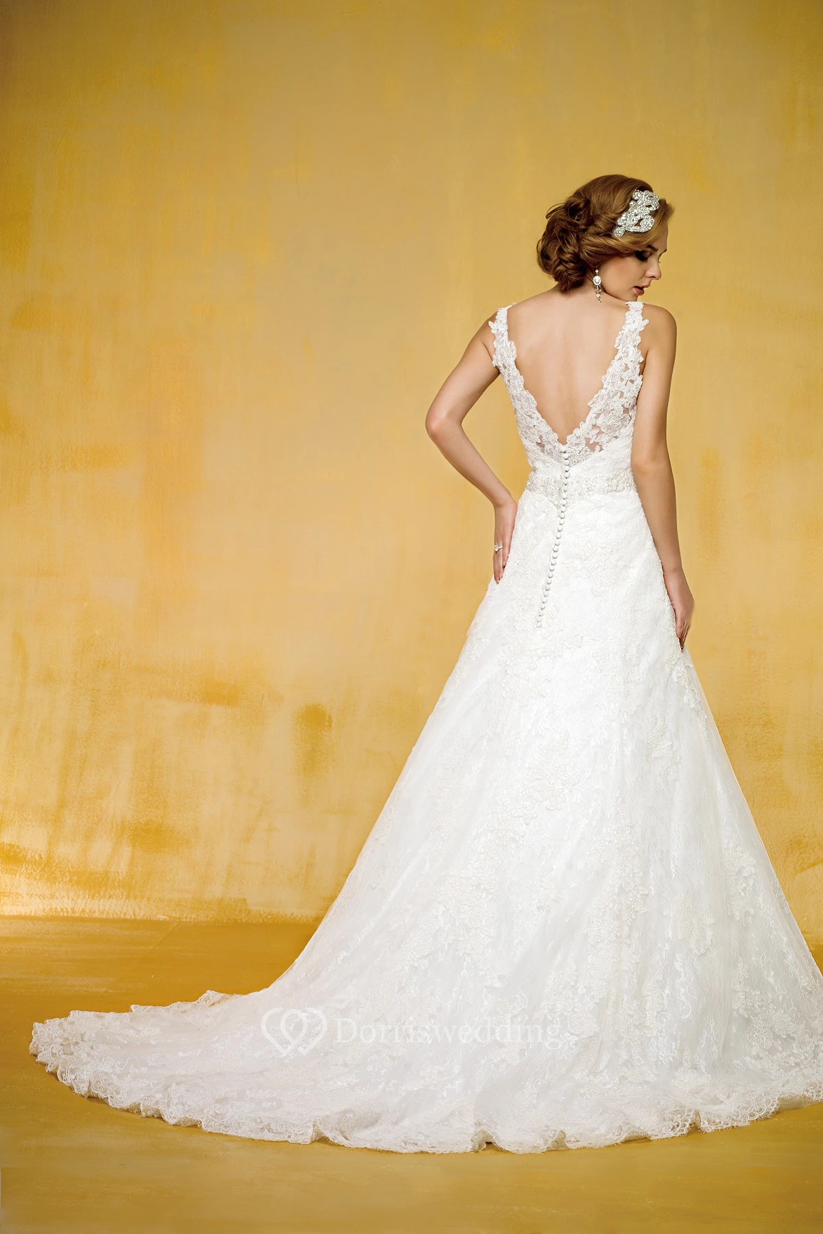 Sleeveless V-Neck A-Line Wedding Dress With Low V-Back And Appliques