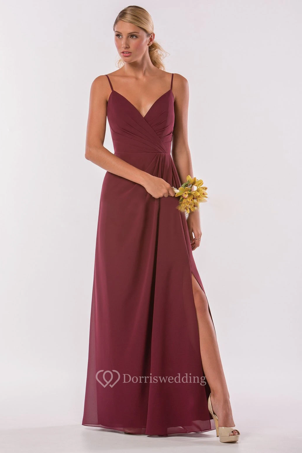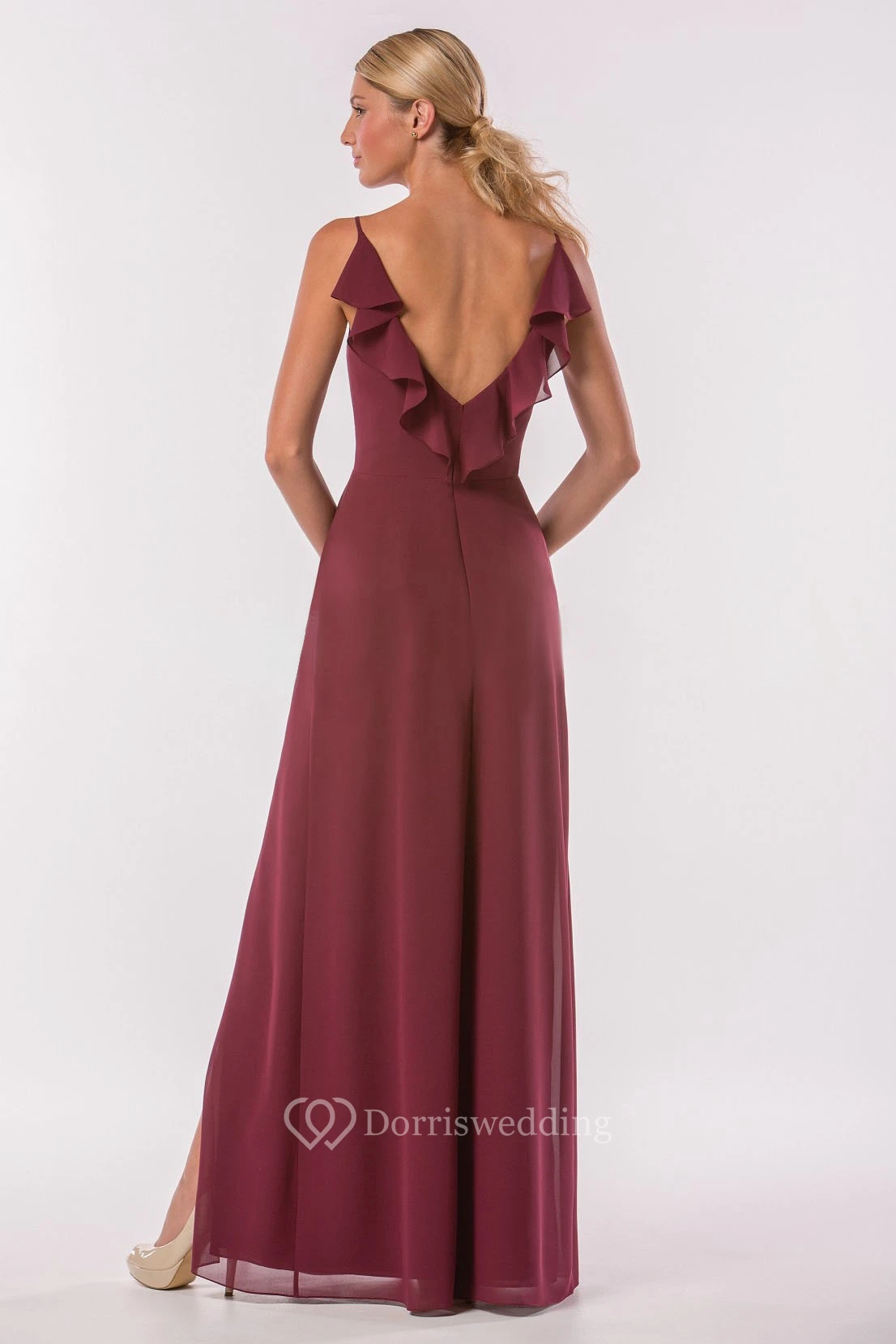 Sleeveless V-Neck Gown With Spaghetti Straps And Ruffles