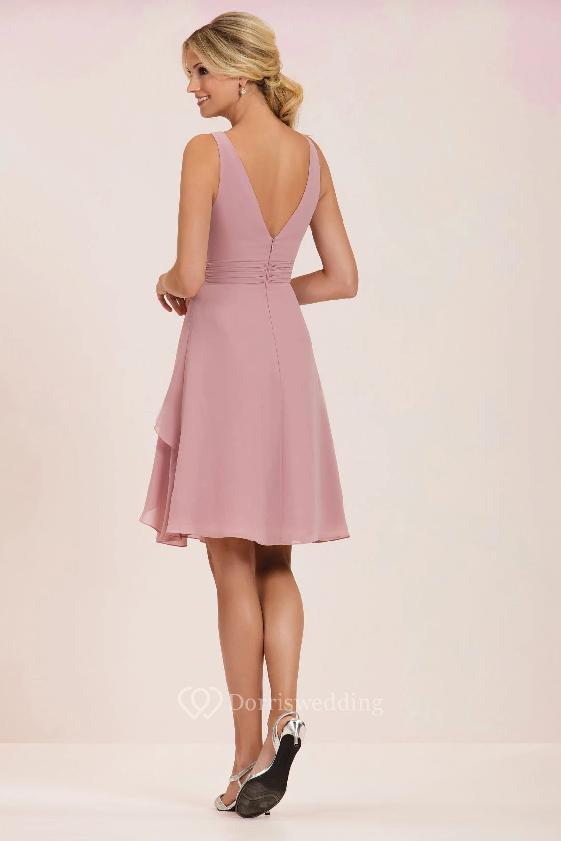 Sleeveless V-Neck Knee-Length Chiffon Bridesmaid Dress With Ruffles