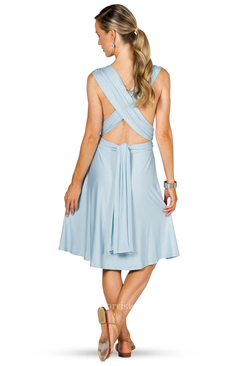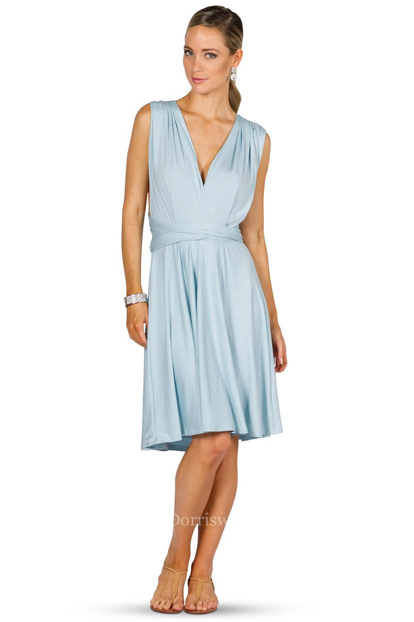 Sleeveless V-Neck Knee-Length Chiffon Convertible Bridesmaid Dress With Ribbon And Straps