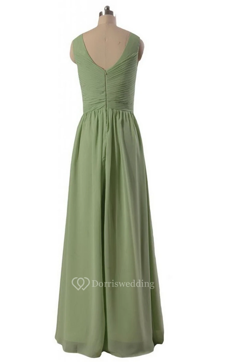 Sleeveless V-neck Long Chiffon Dress With Ruching