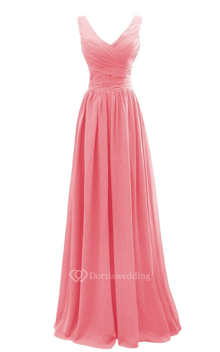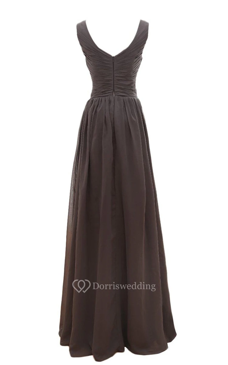 Sleeveless V-neck Long Chiffon Gown With Pleats
