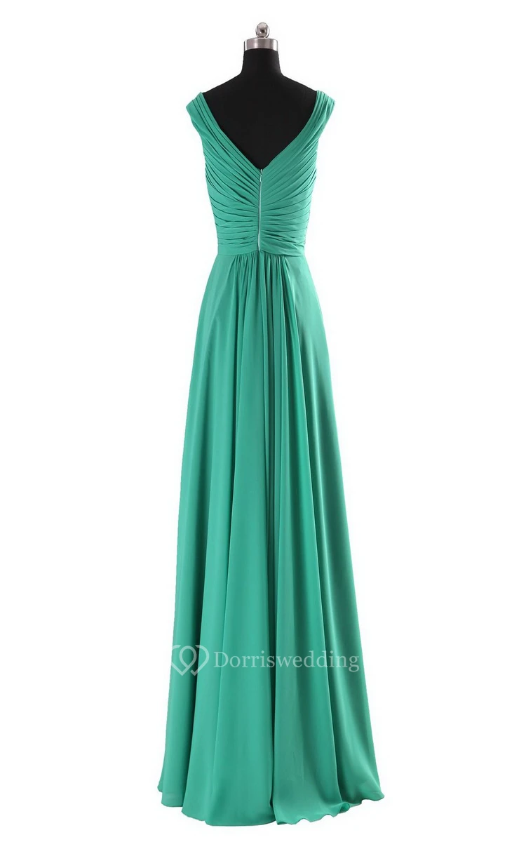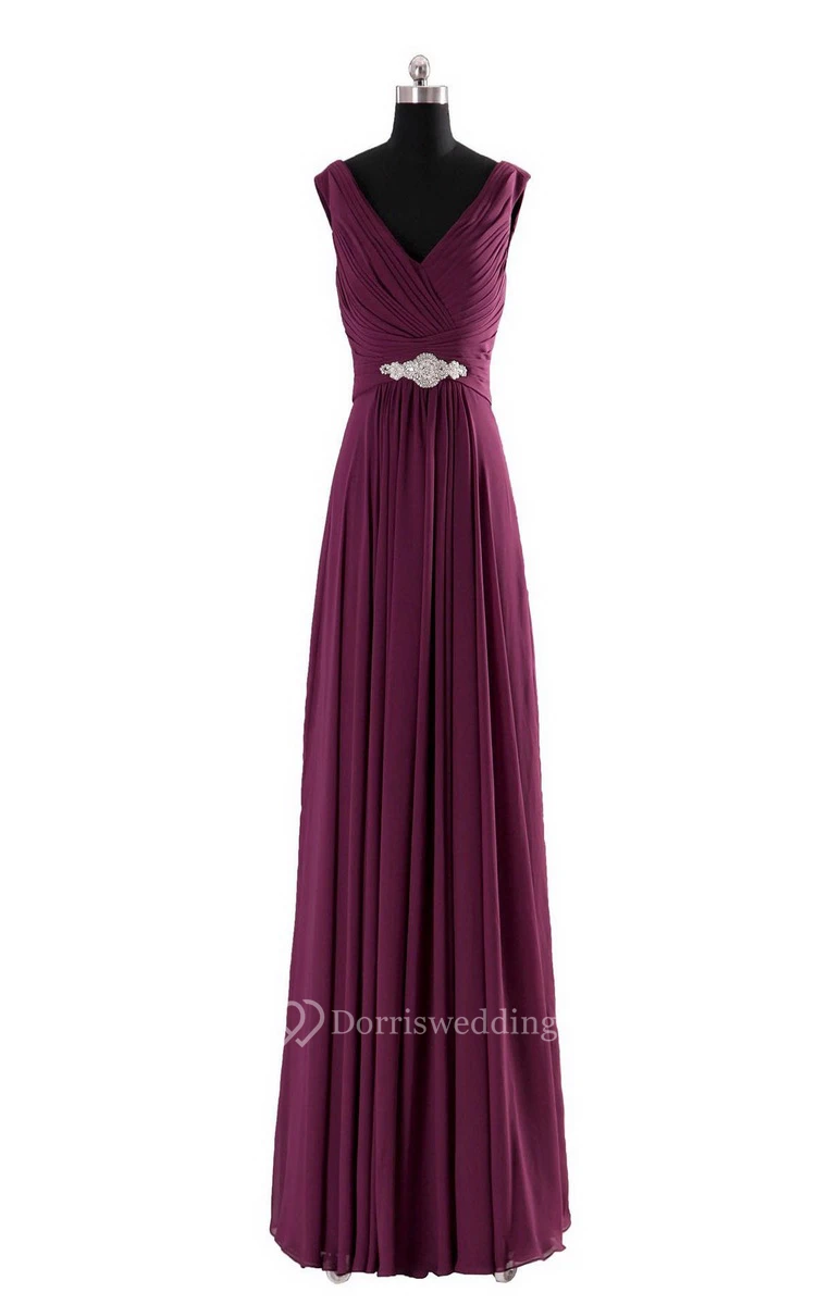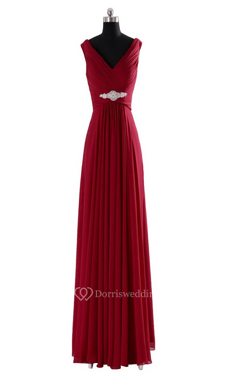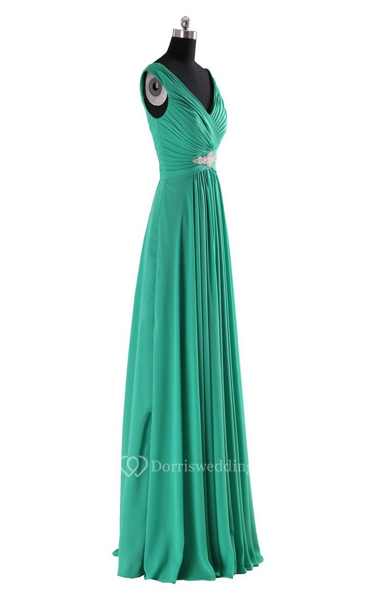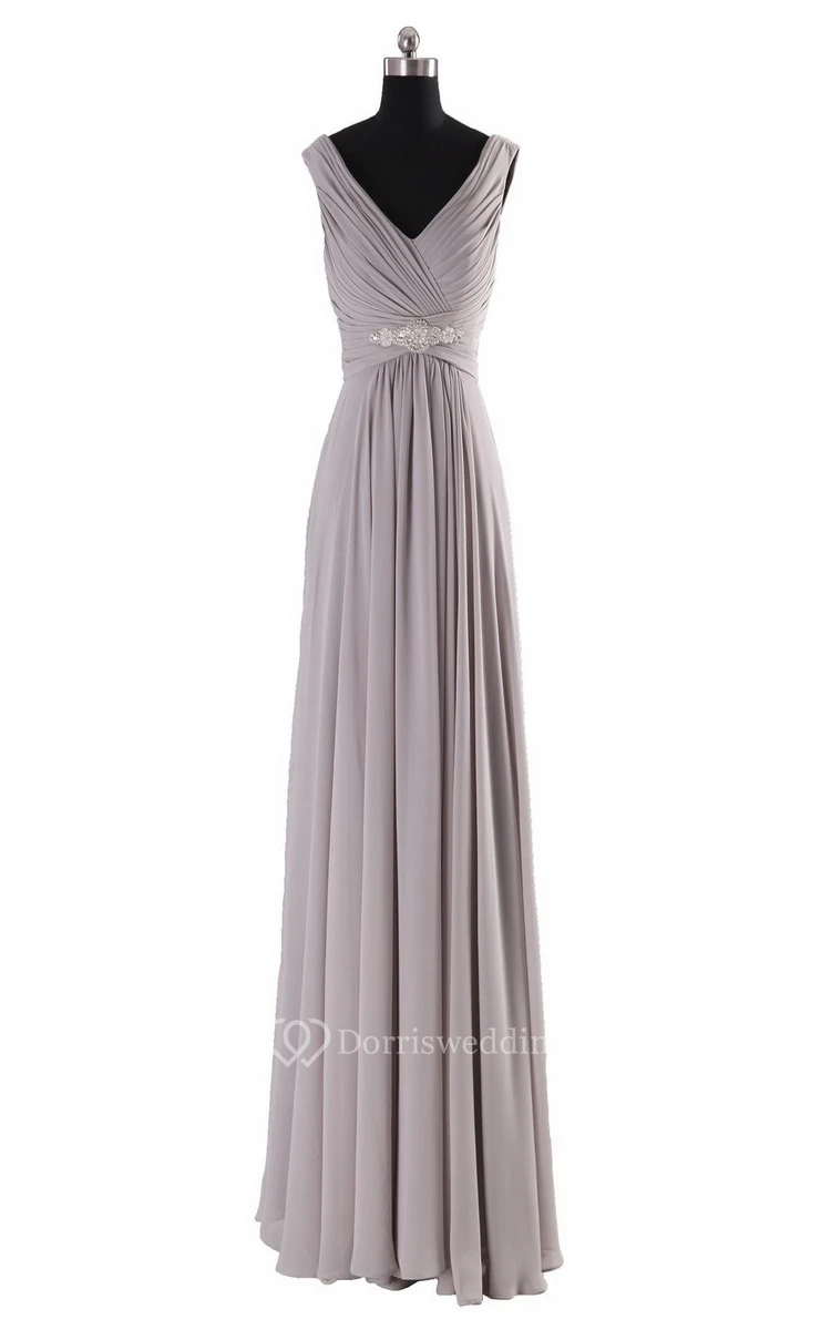 Sleeveless V-neck Long Empire Beaded Chiffon Dress