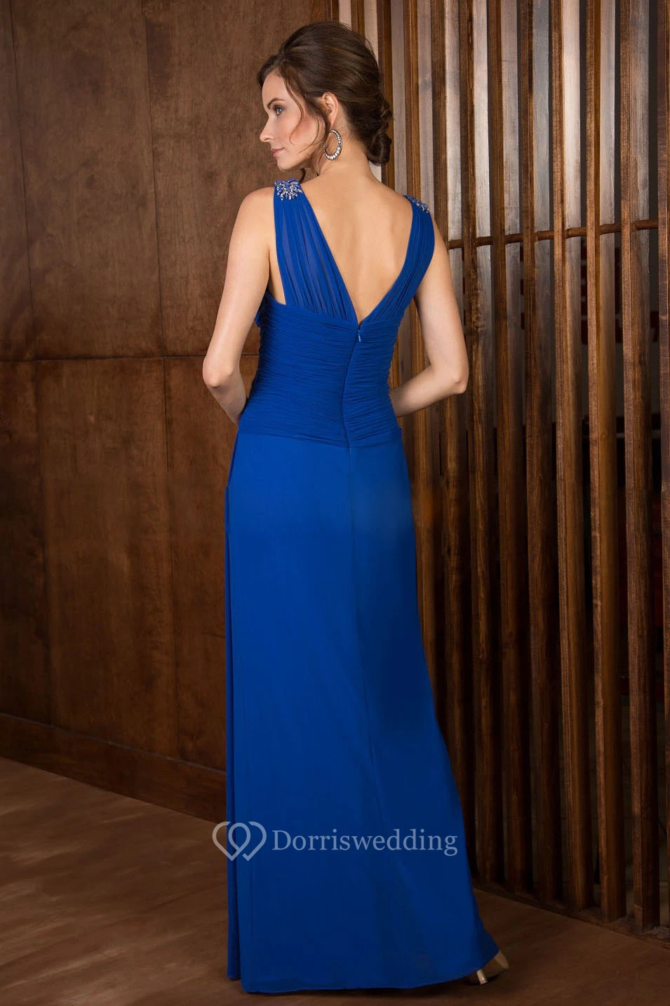 Sleeveless V-Neck Long Mother Of The Bride Dress With Jeweled Shoulders And Shawl