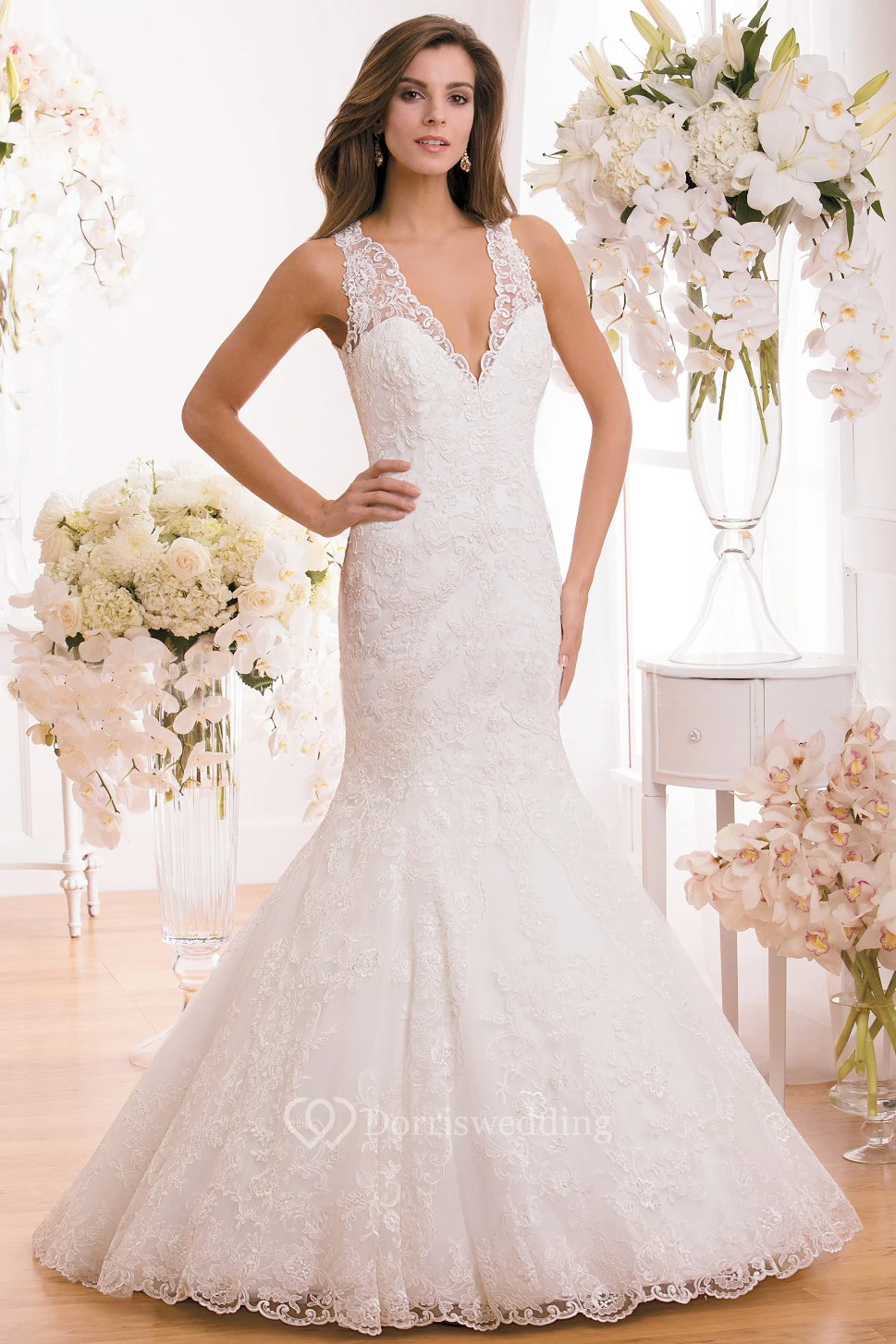 Sleeveless V-Neck Mermaid Wedding Dress With Keyhole Back And Appliques