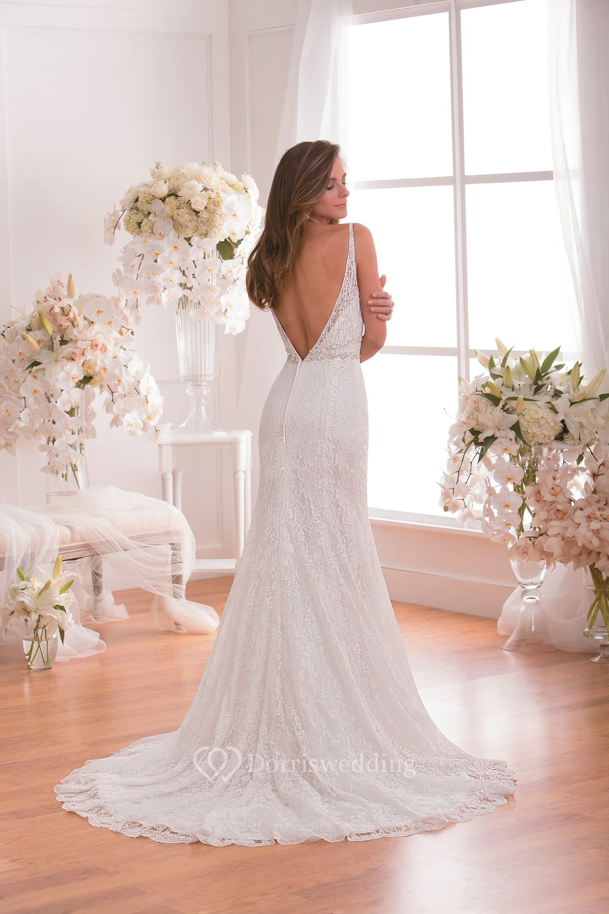 Sleeveless V-Neck Mermaid Wedding Dress With Low V-Back And Jewels