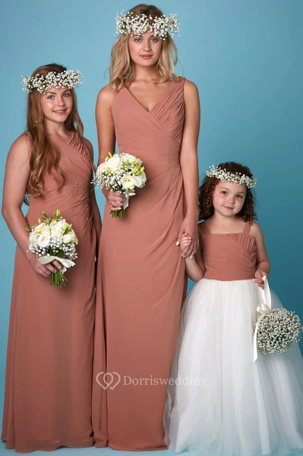 Sleeveless V-Neck Ruched Chiffon Bridesmaid Dress