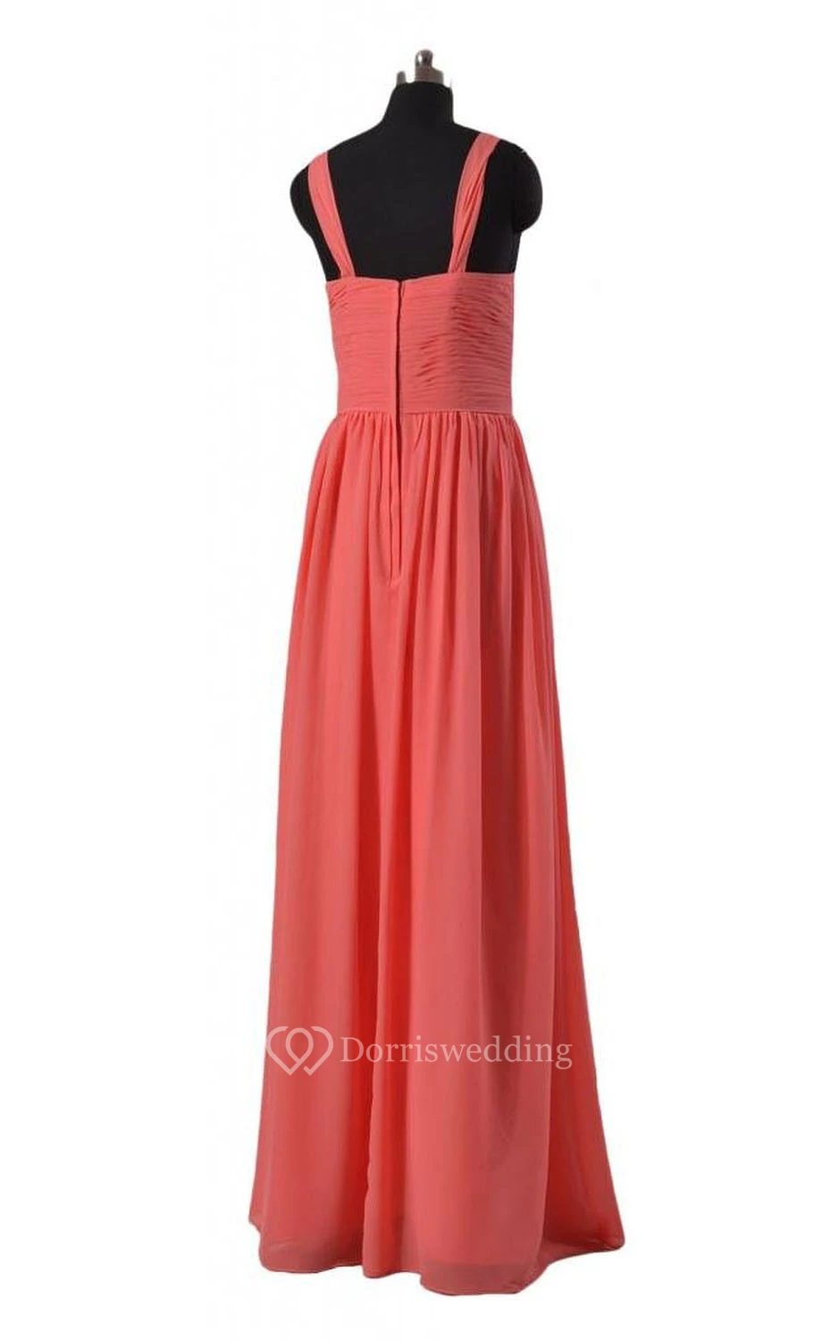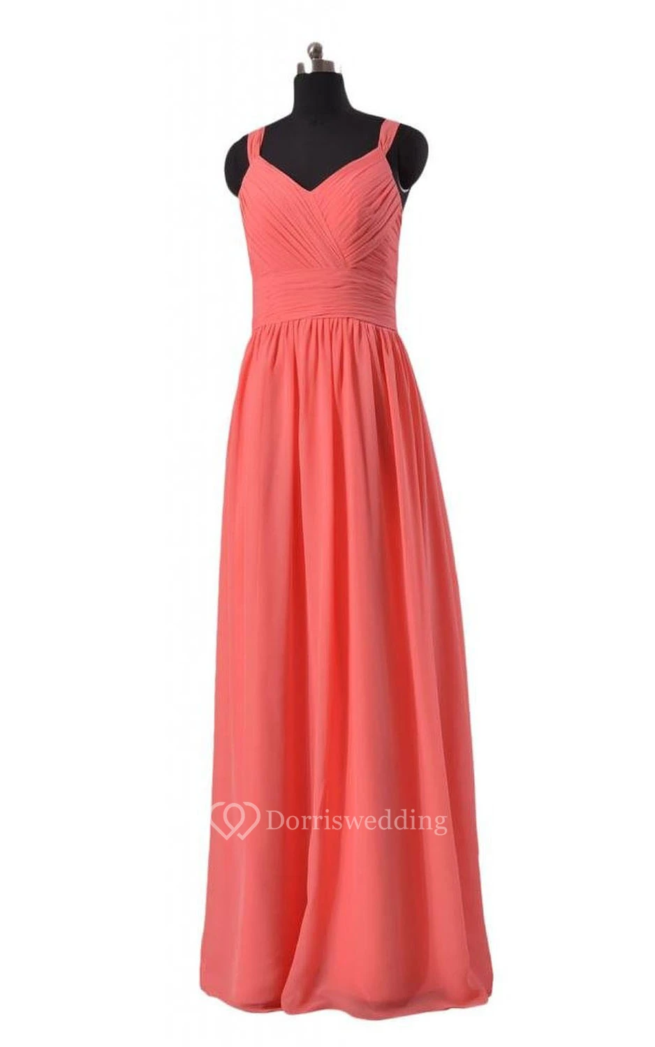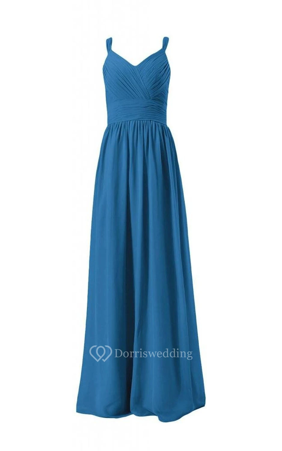 Sleeveless V-neck Ruched Sash Long Pleated Chiffon Dress