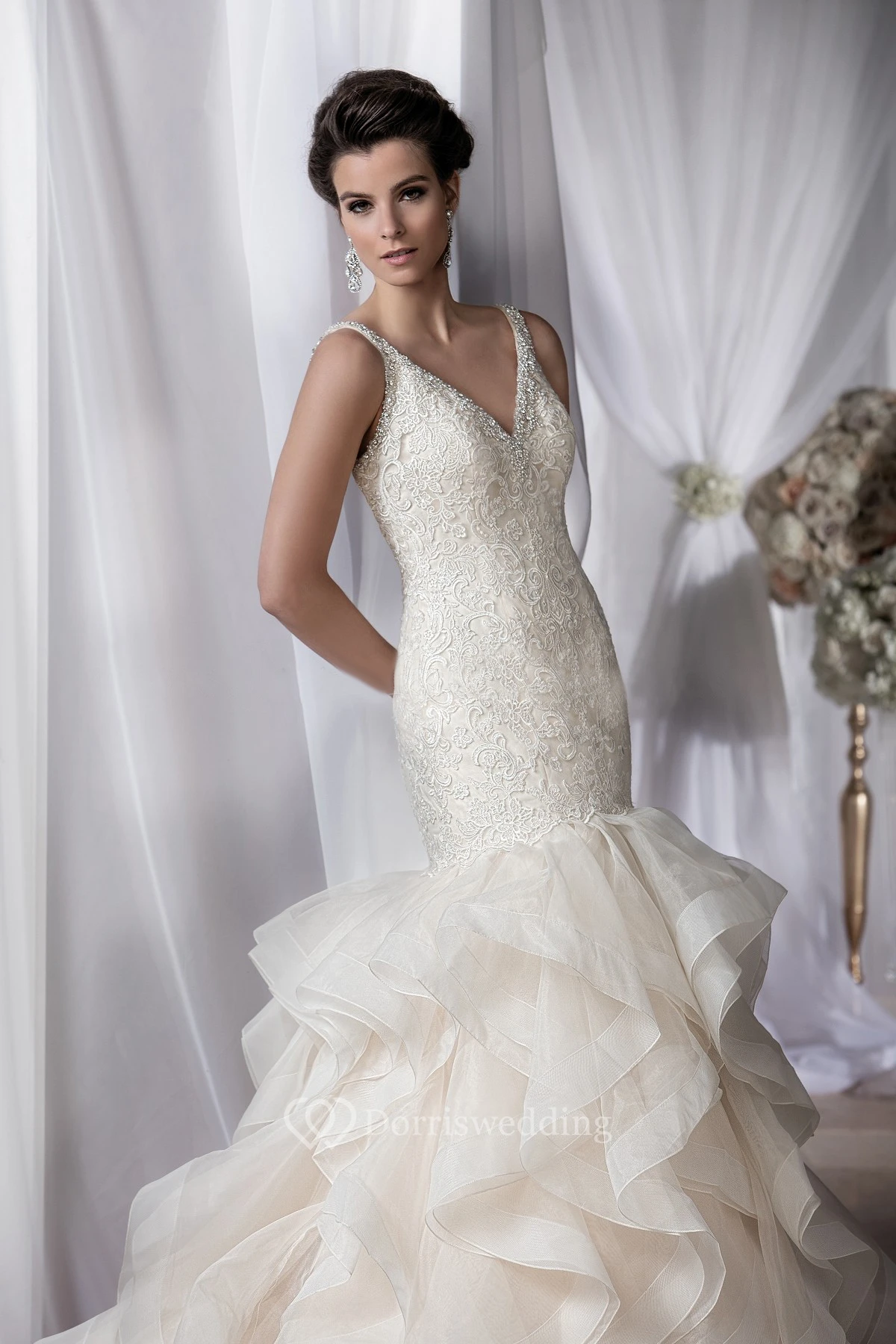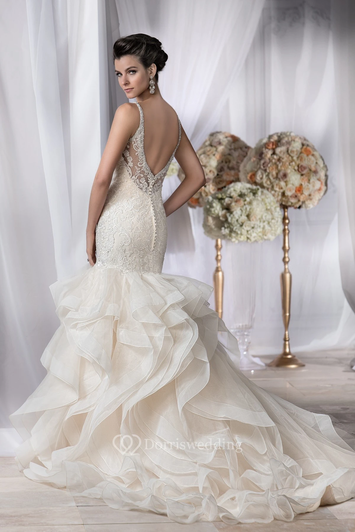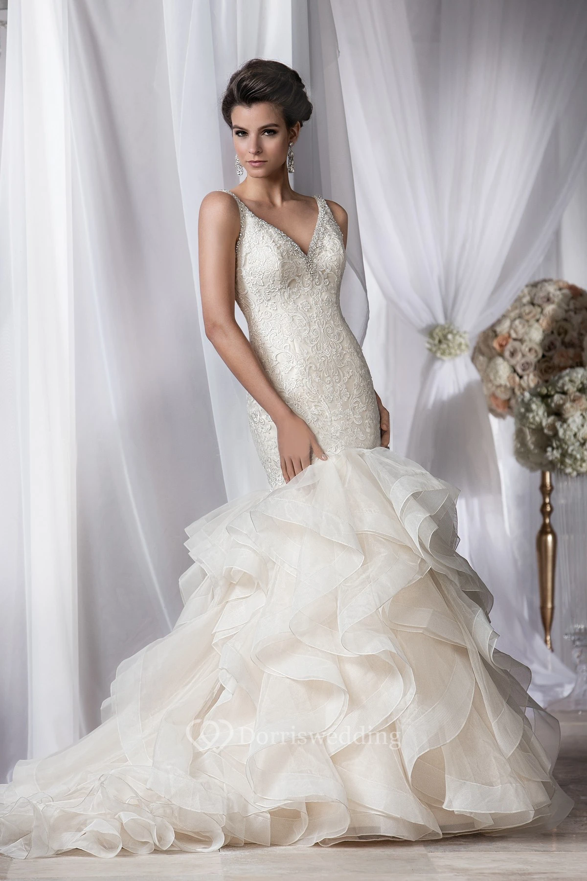 • Embellishments: Cascading Ruffles, Beading