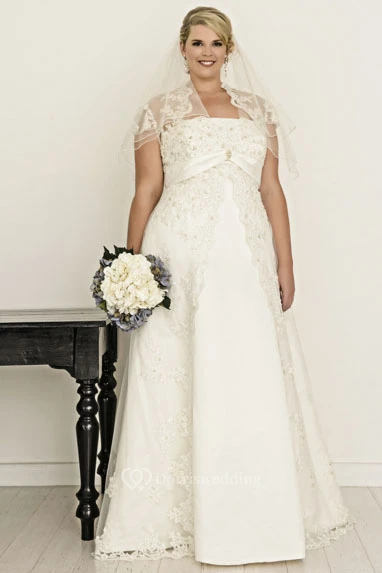Sleeveless V-Neck Satin Plus Size Wedding Dress