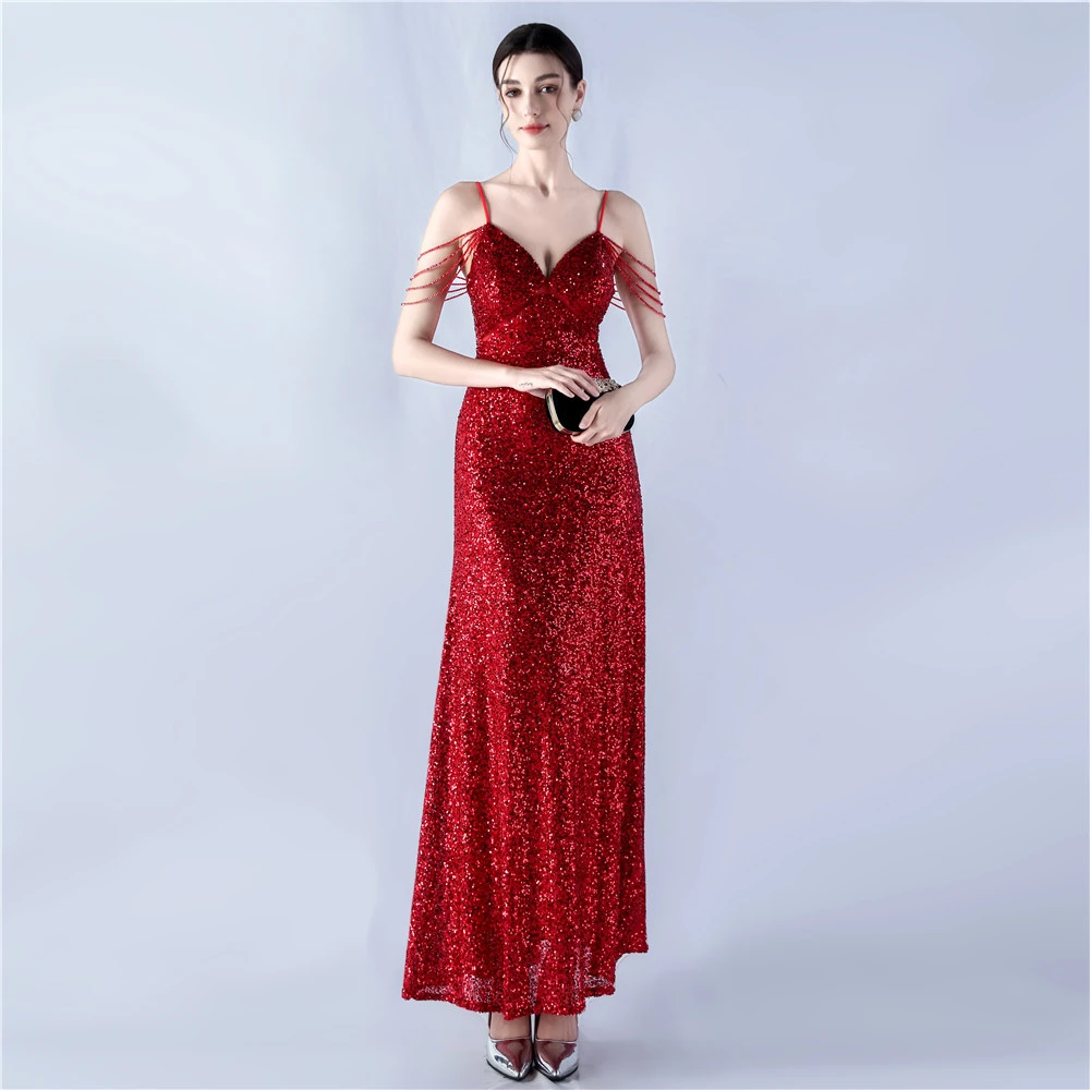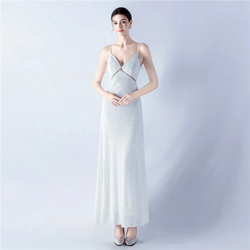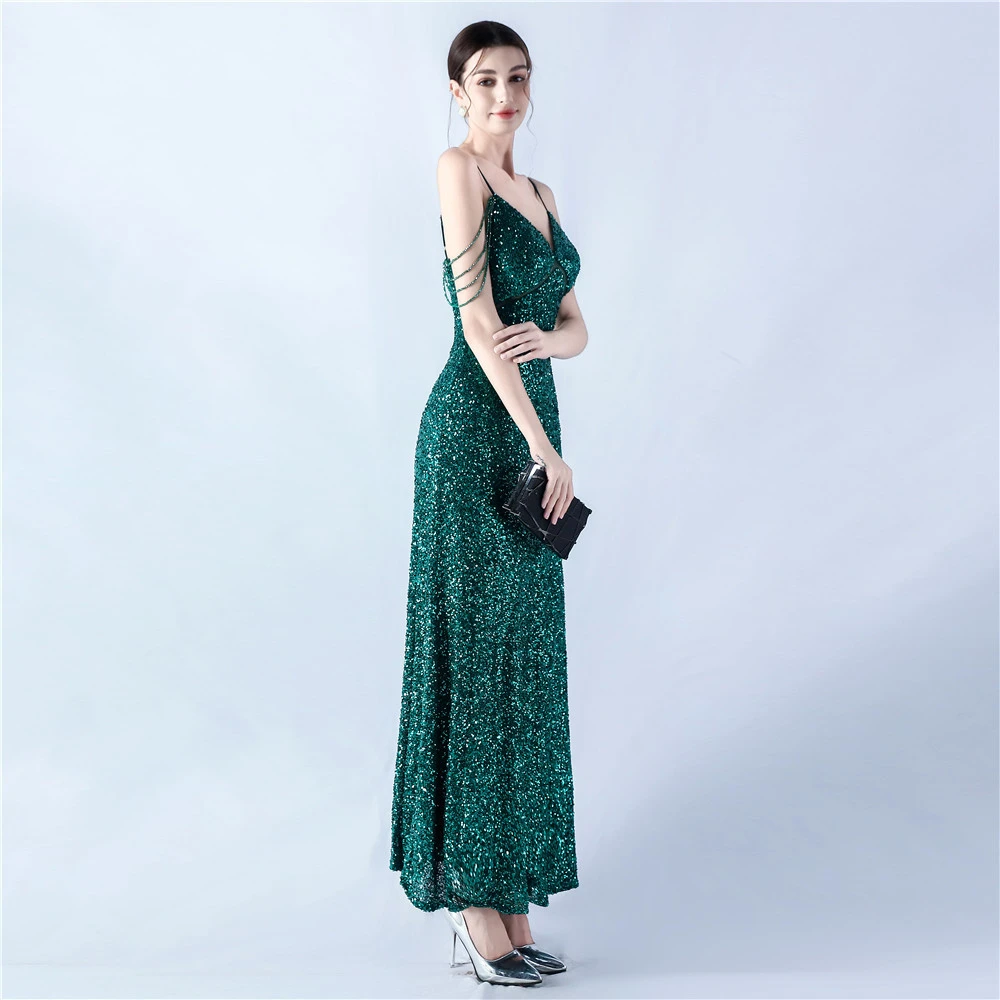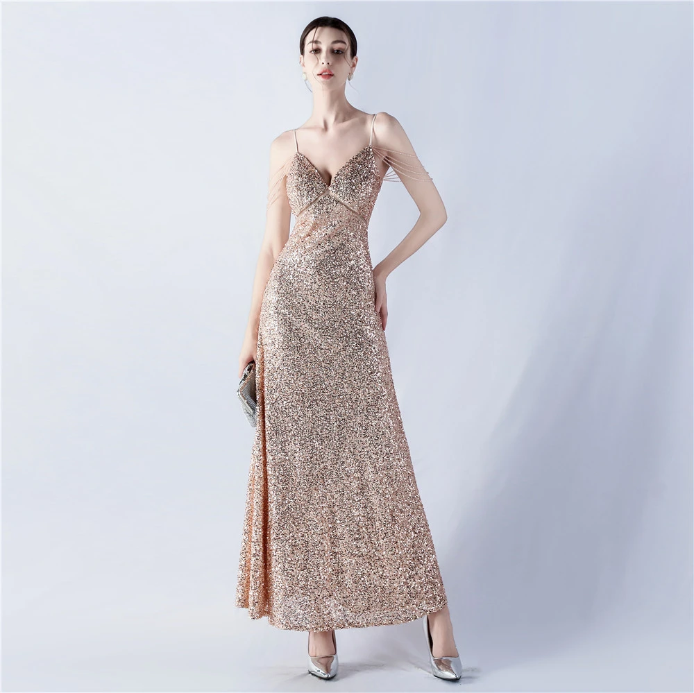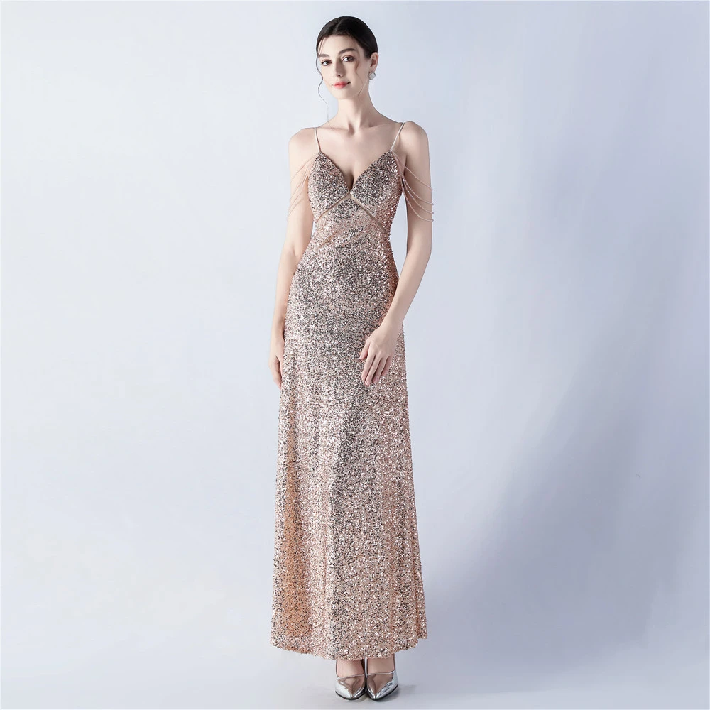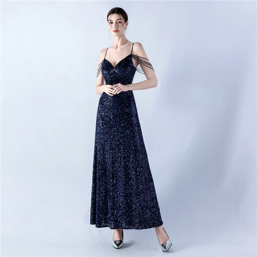 Sling A-Line Large Swing Mesh Sequin Evening Dress