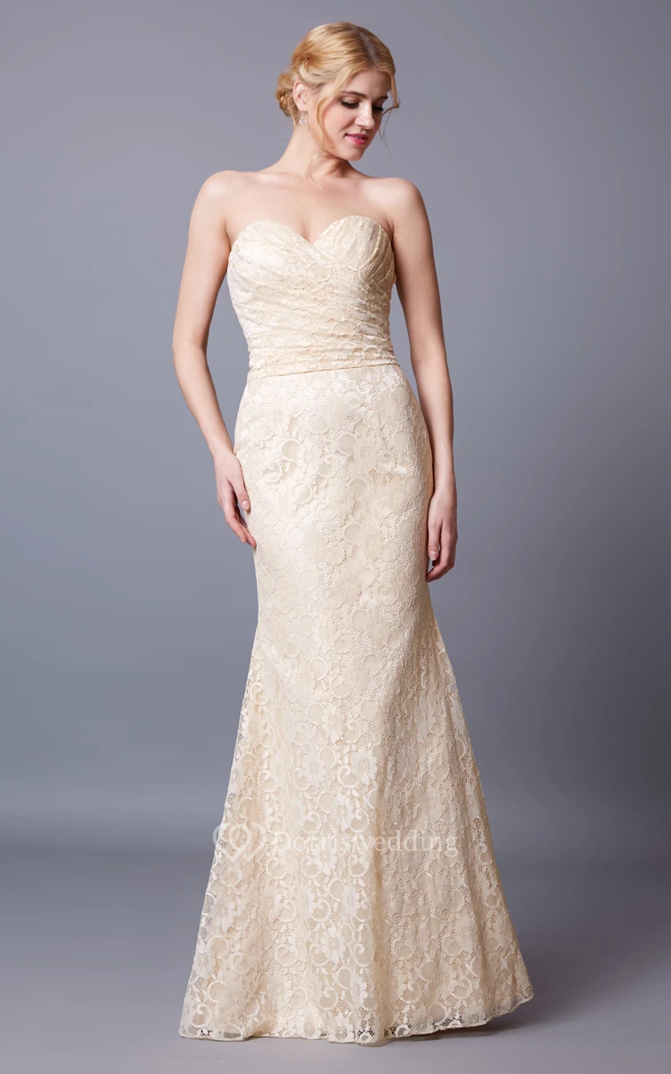 Slinky Sleeveless Sweetheart Lace Gown With Backless