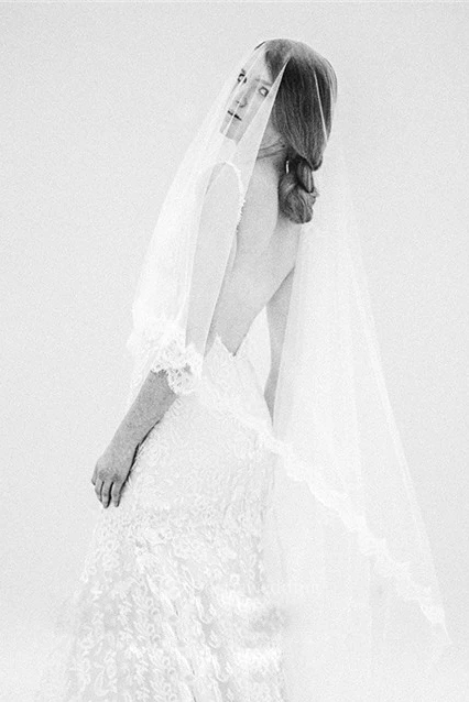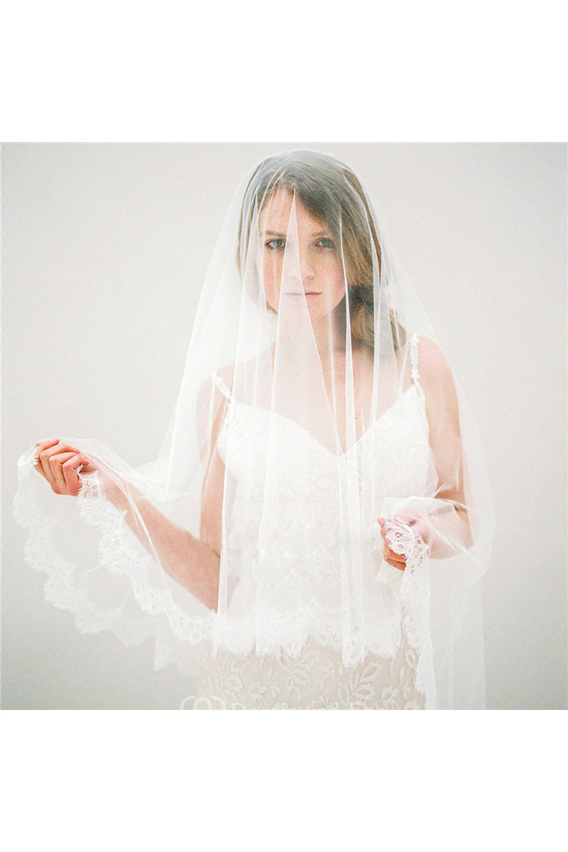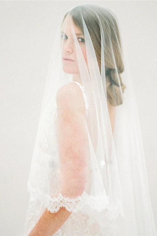 Soft Tulle Bride Veil with Lace Applique