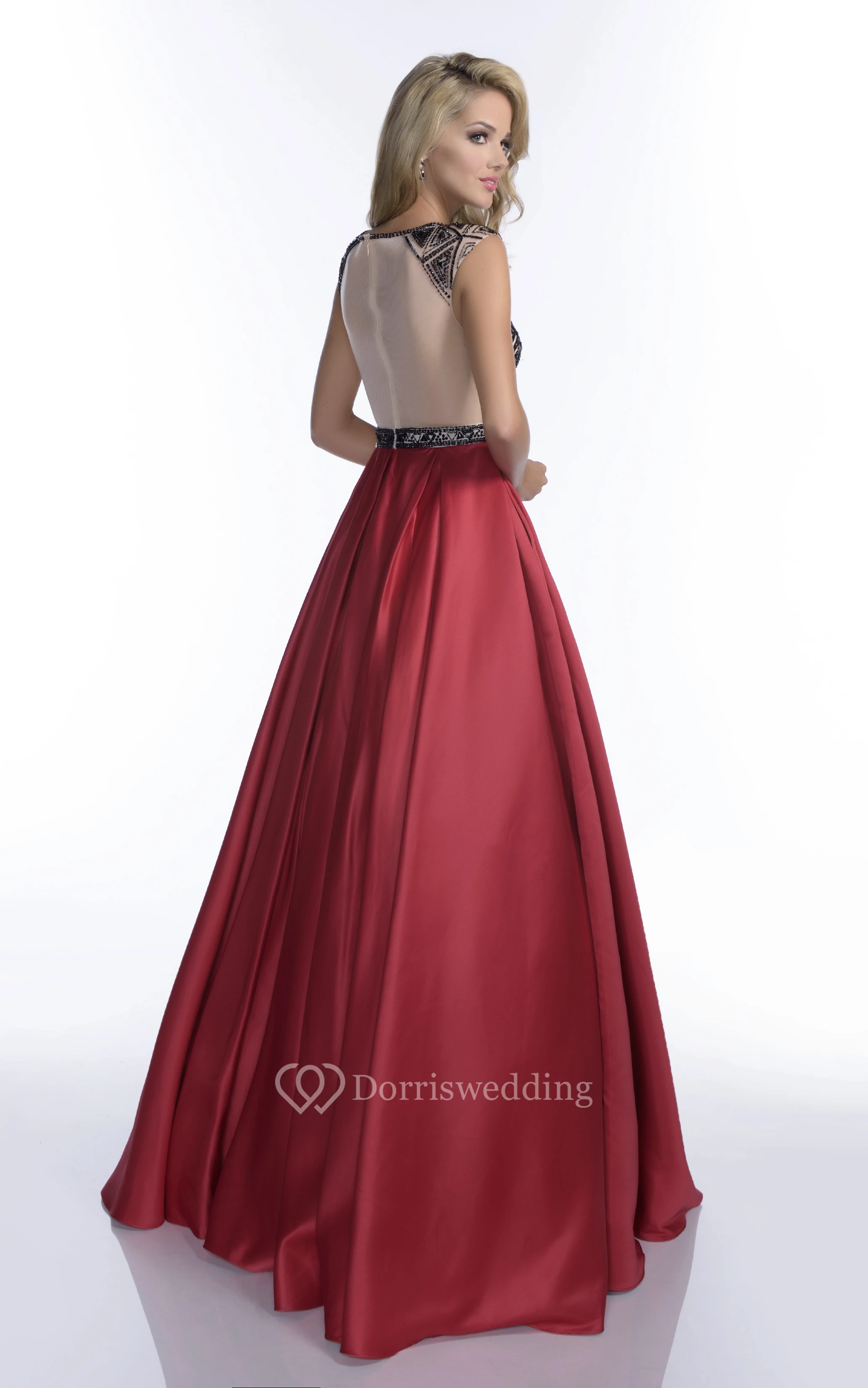 Sophisticated A-Line Satin Cap Sleeve Gown With Beaded Bodice