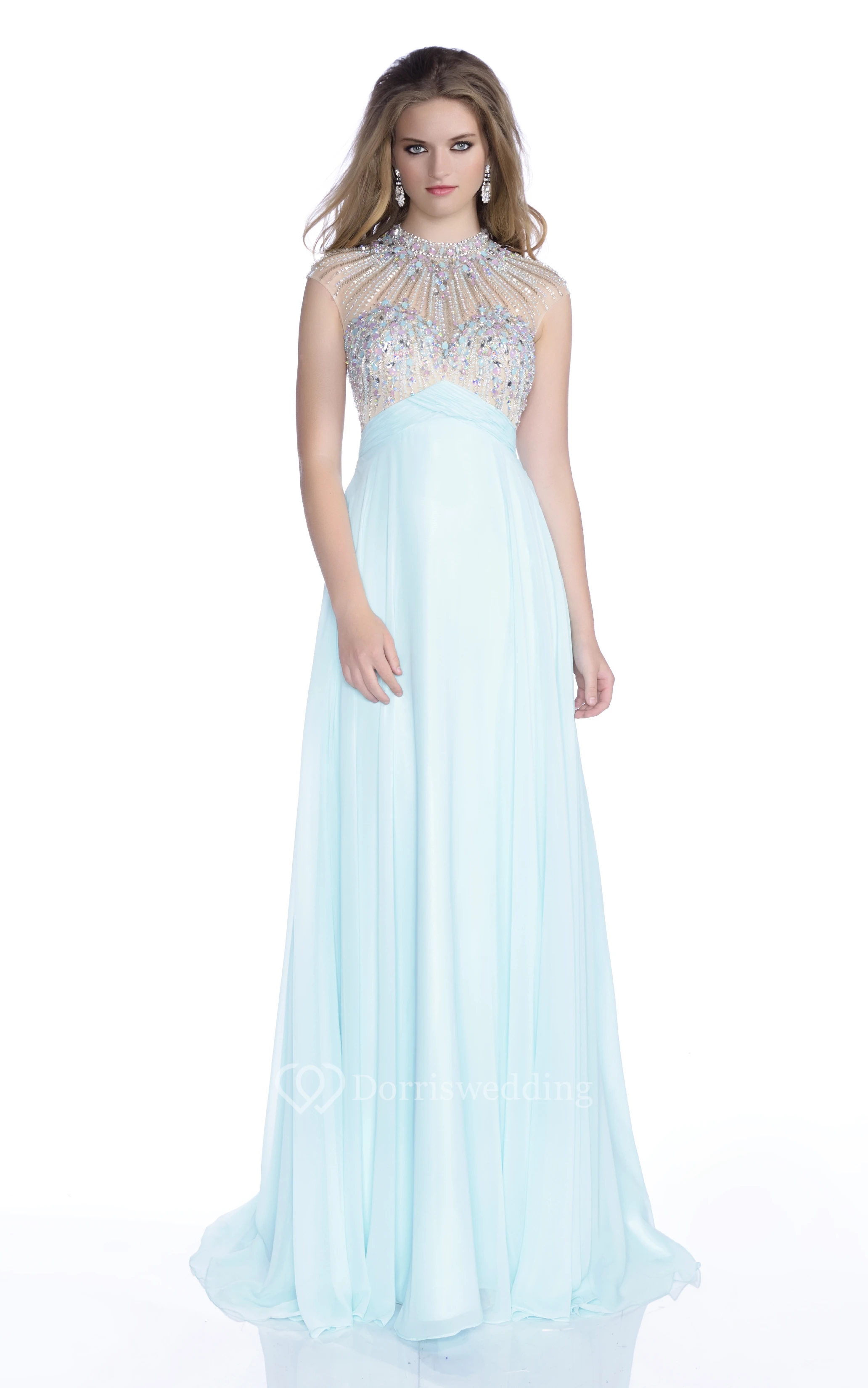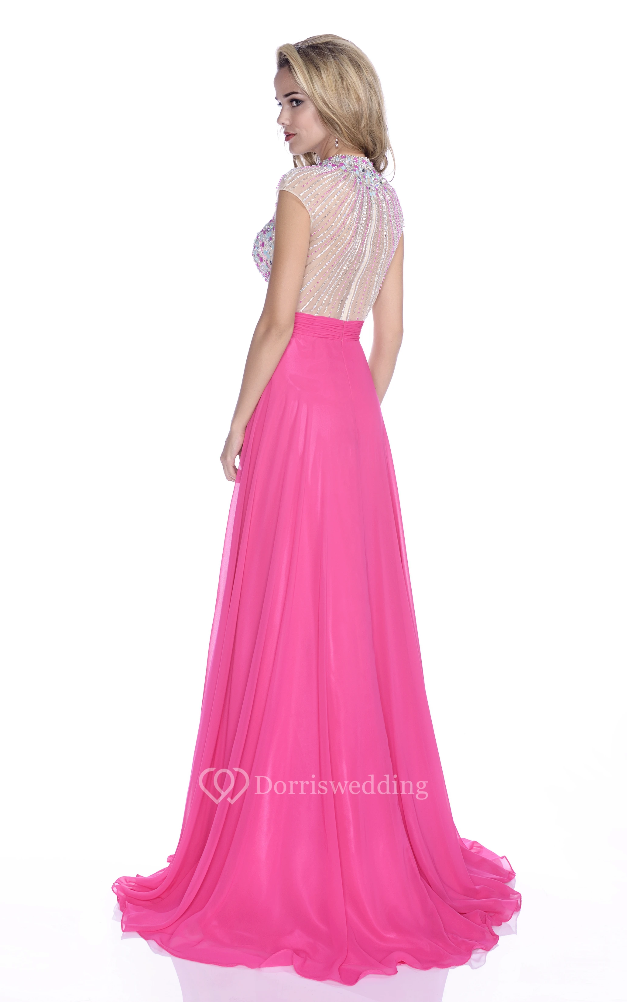 Sophisticated Cap Sleeve Chiffon Prom Dress With Bling Rhinestones Bust