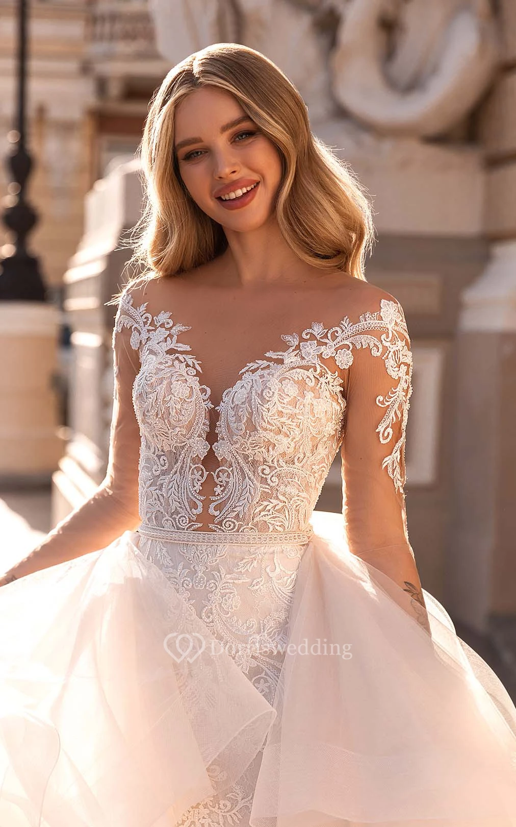 This beautiful wedding dress fitted perfectly, and they made custom modifications to my request at no extra charge. I look forward to buying more clothes from here in the future!
