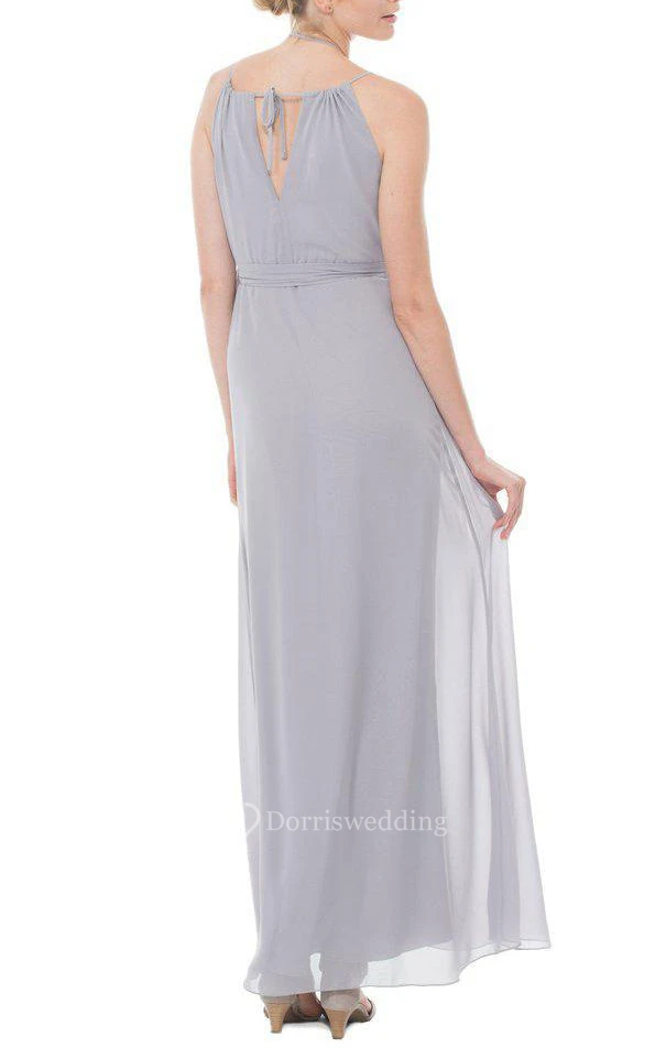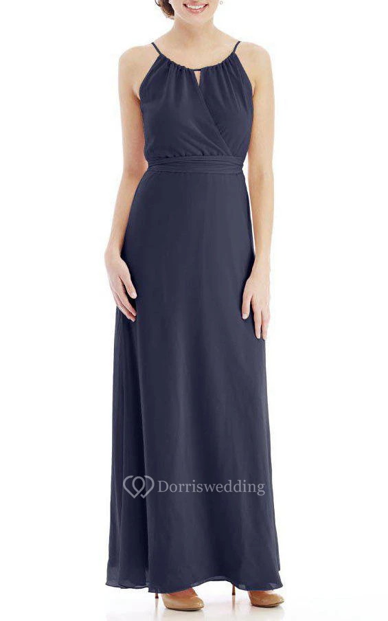 Spagetti Straps Ankle-length Chiffon Dress