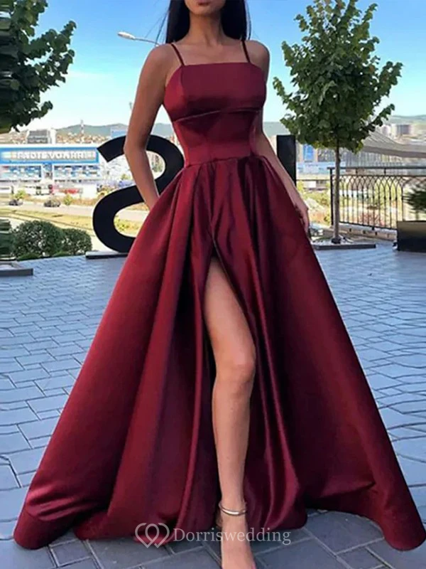 Spaghetti A-line Sleeveless Burgundy Empire A-line Prom Dress