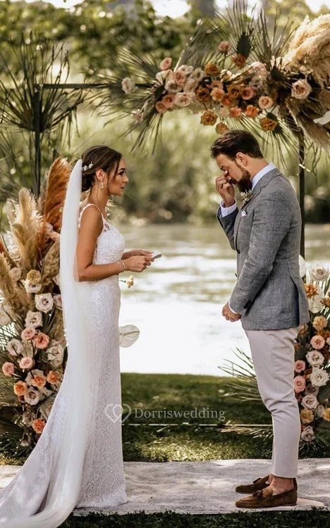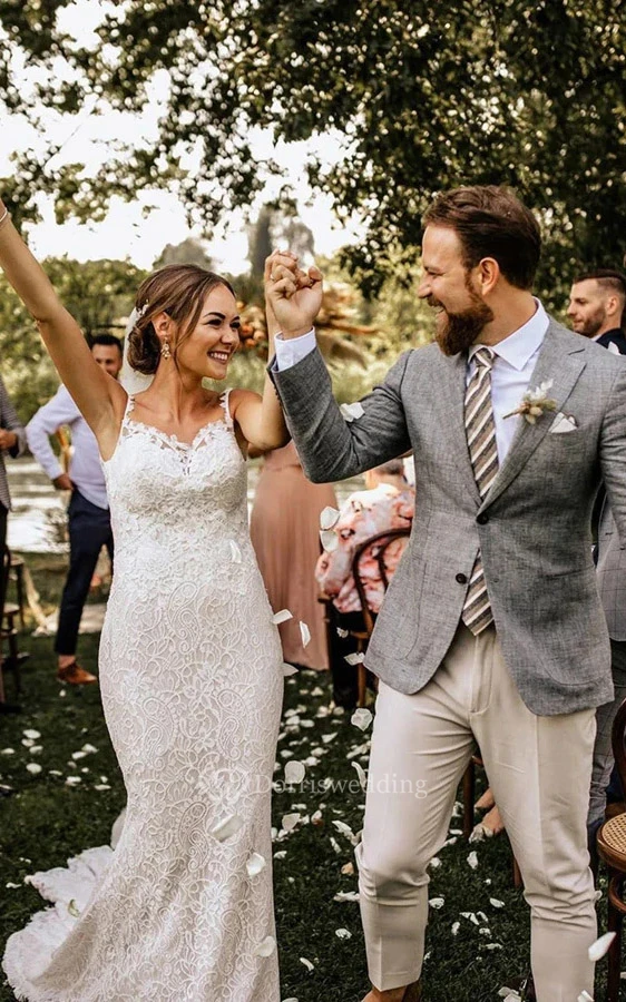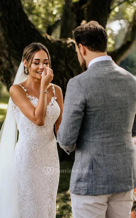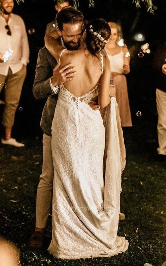 Spaghetti Backless Sheath Sheath Floor-length Wedding Dress