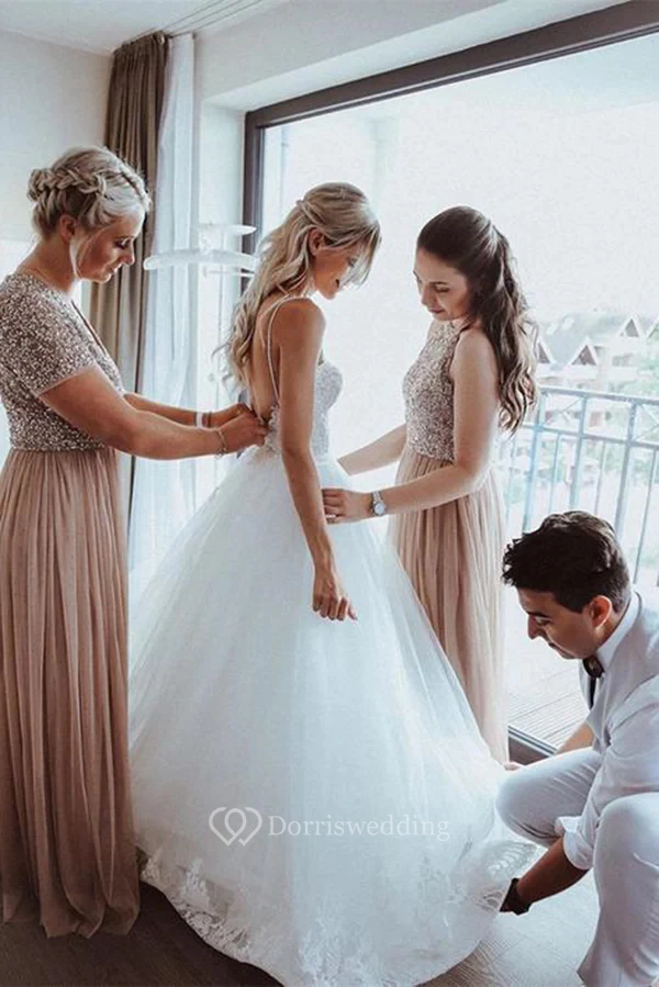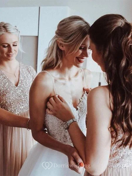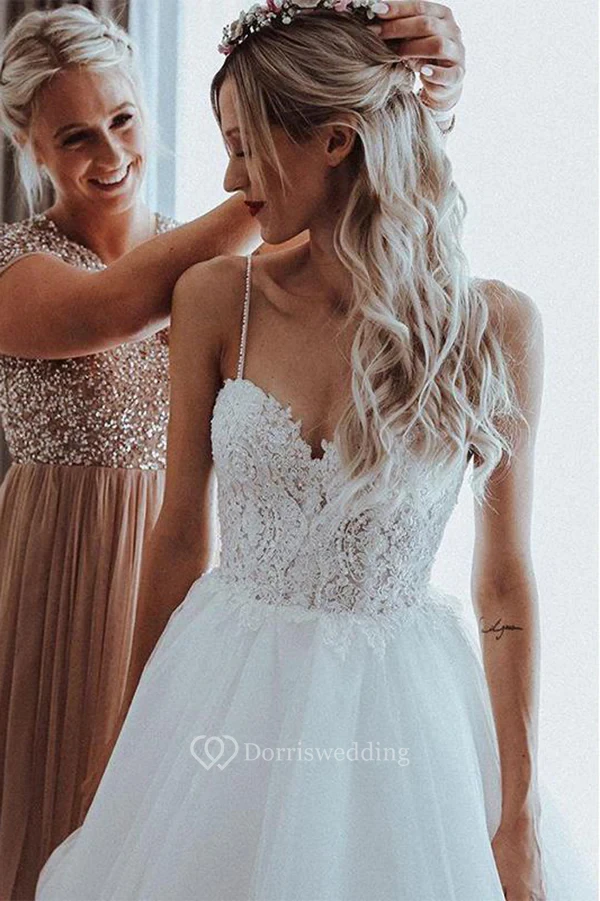 Spaghetti Beaded Empire A-line Tulle Wedding Dress