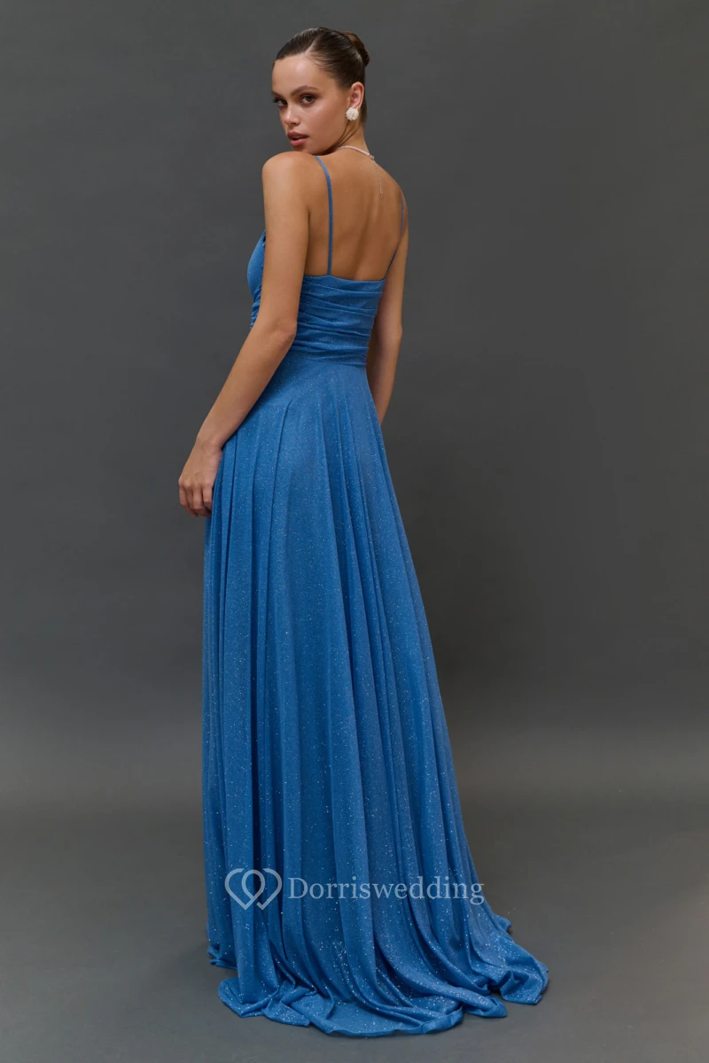 Spaghetti Criss-cross Pleated Sheath Sequin Dress