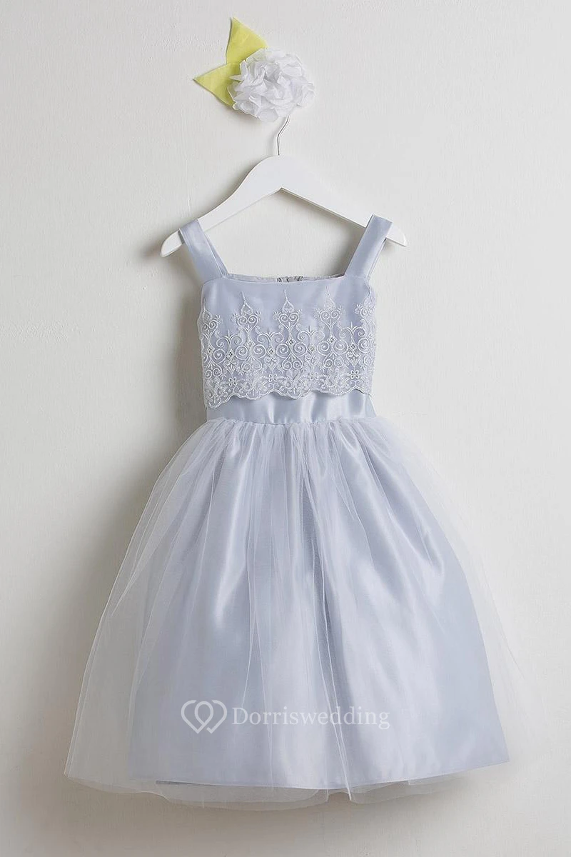 Spaghetti Embroideried Tiered Tulle&Organza Flower Girl Dress