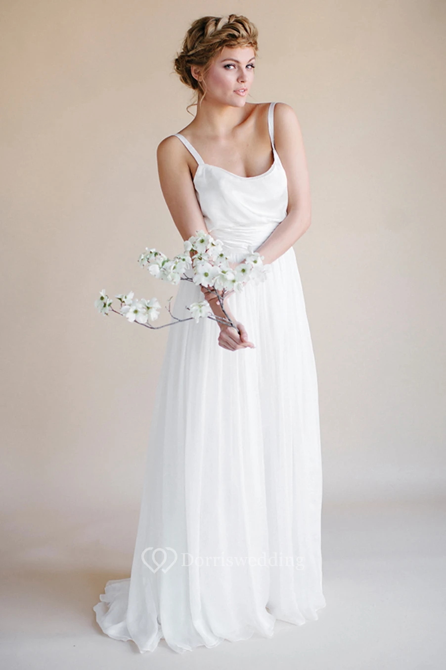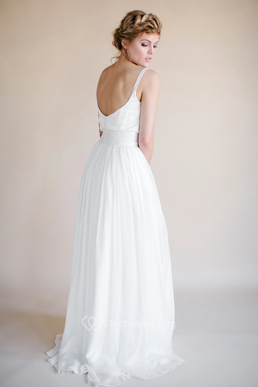 Spaghetti Floor-Length Chiffon Wedding Dress With Pleats And V Back