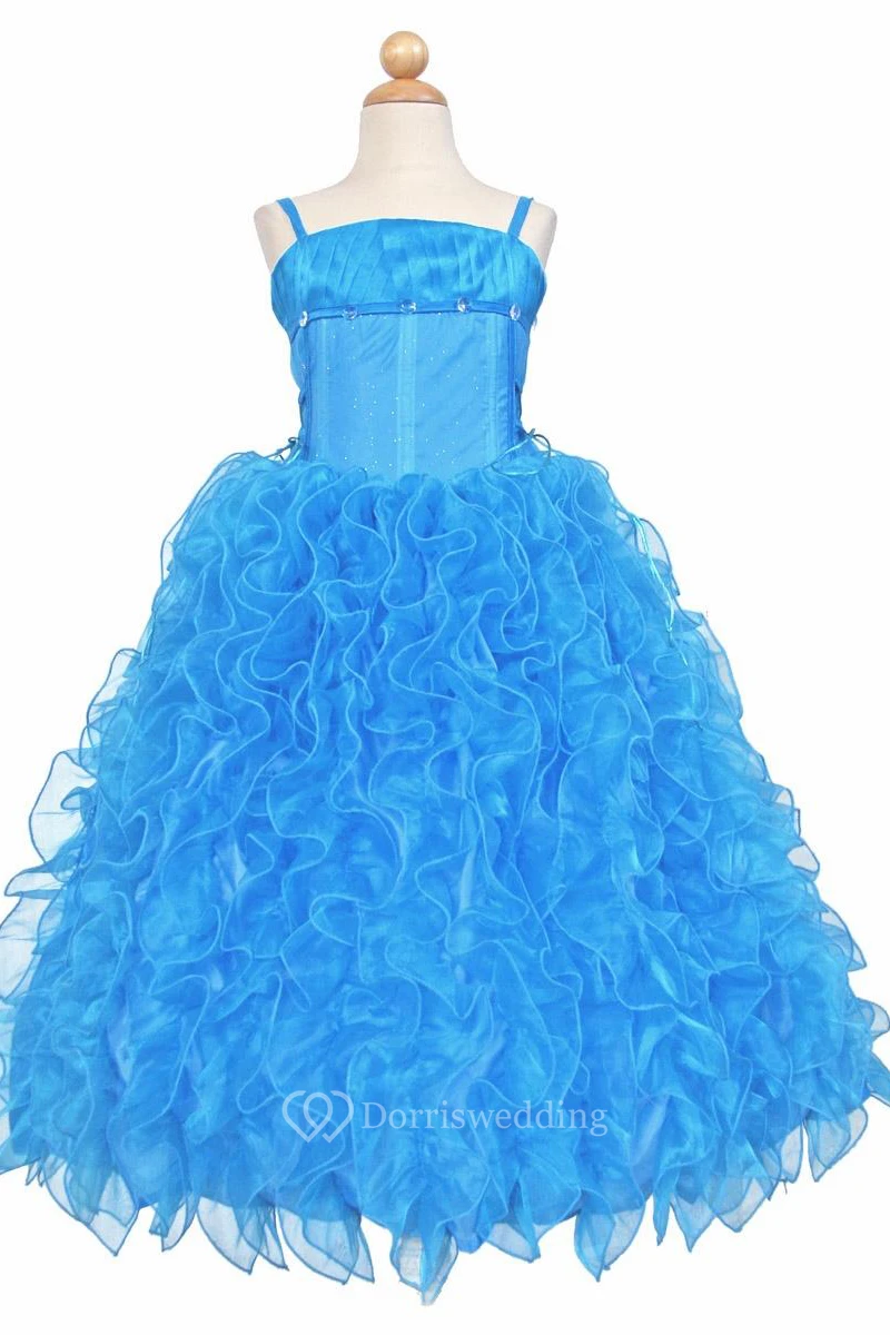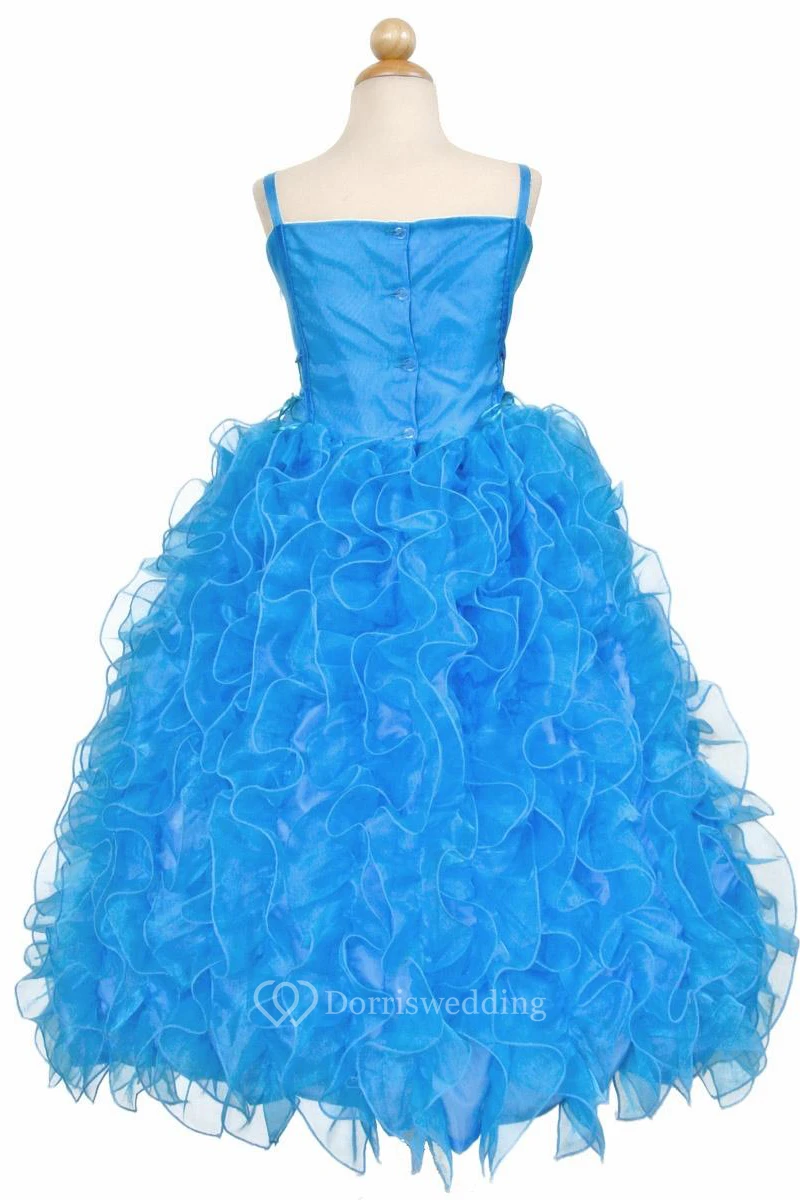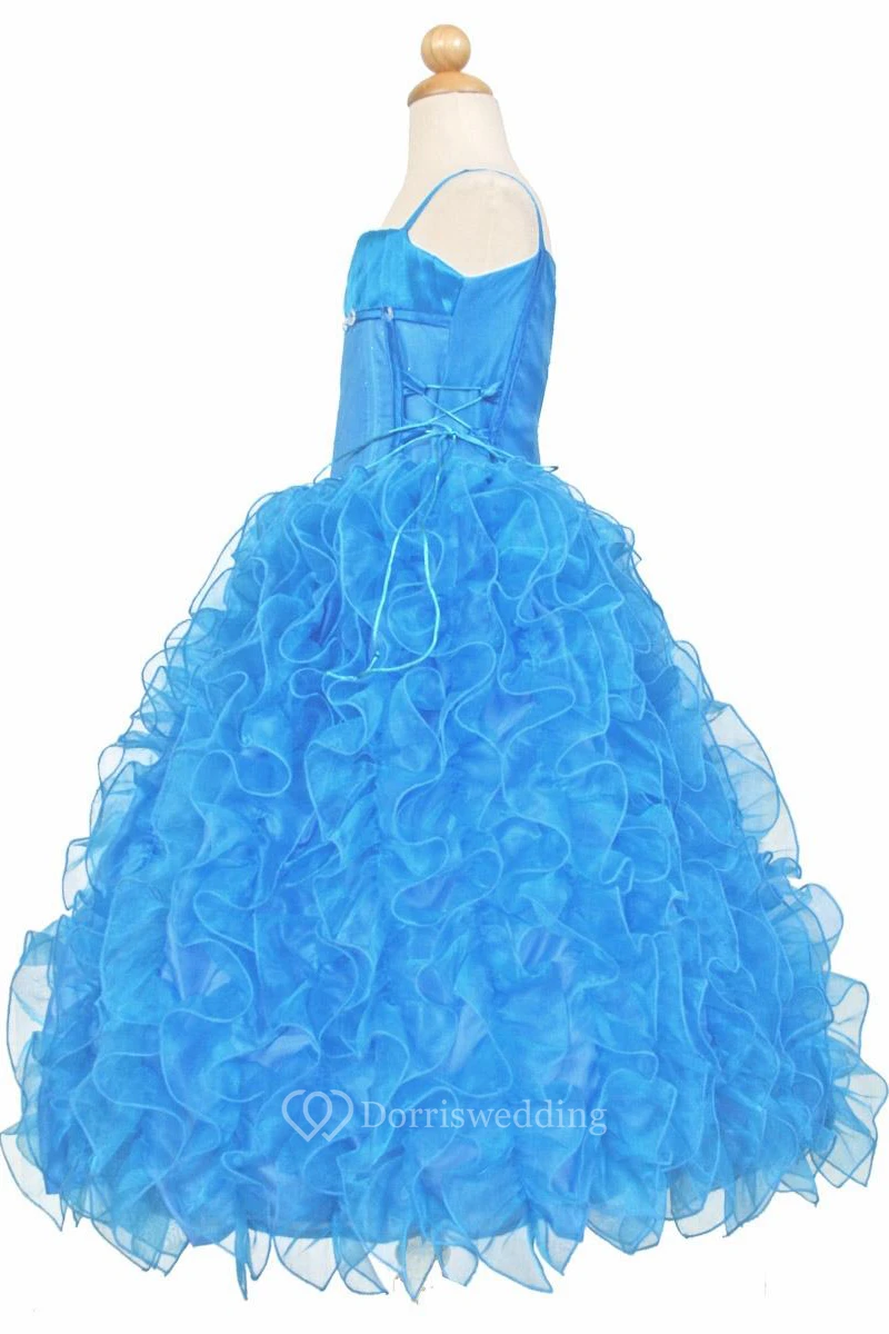 Spaghetti Floor-Length Ruffled Tiered Lace&Organza Flower Girl Dress