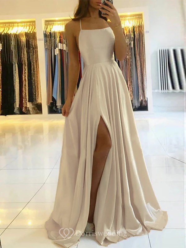 Spaghetti Green Empire A-line Front Split Prom Dress