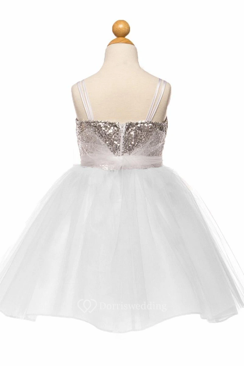 Spaghetti Knee-Length Tulle&Sequins Flower Girl Dress