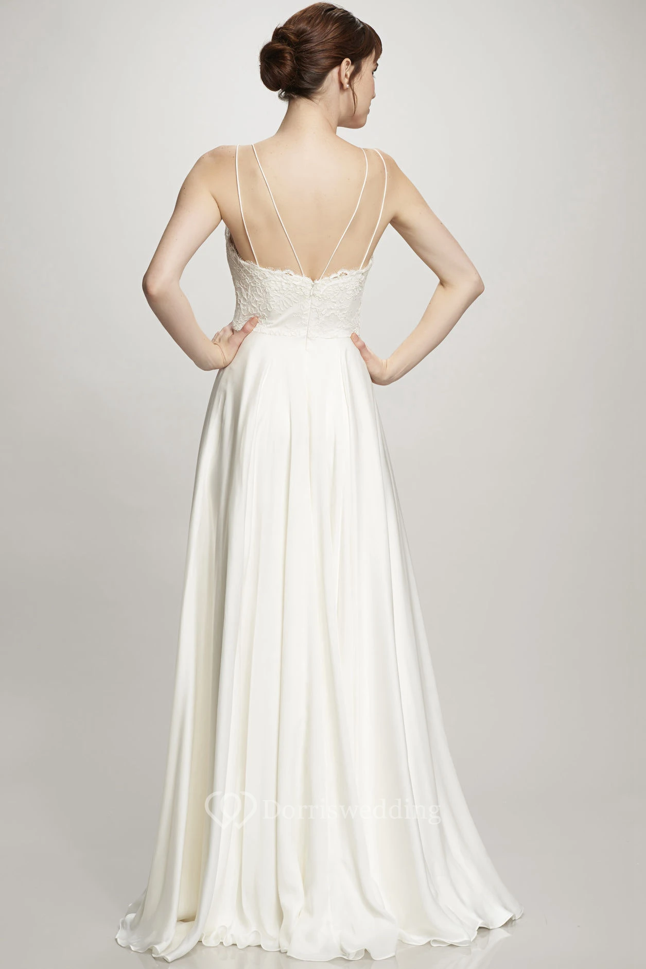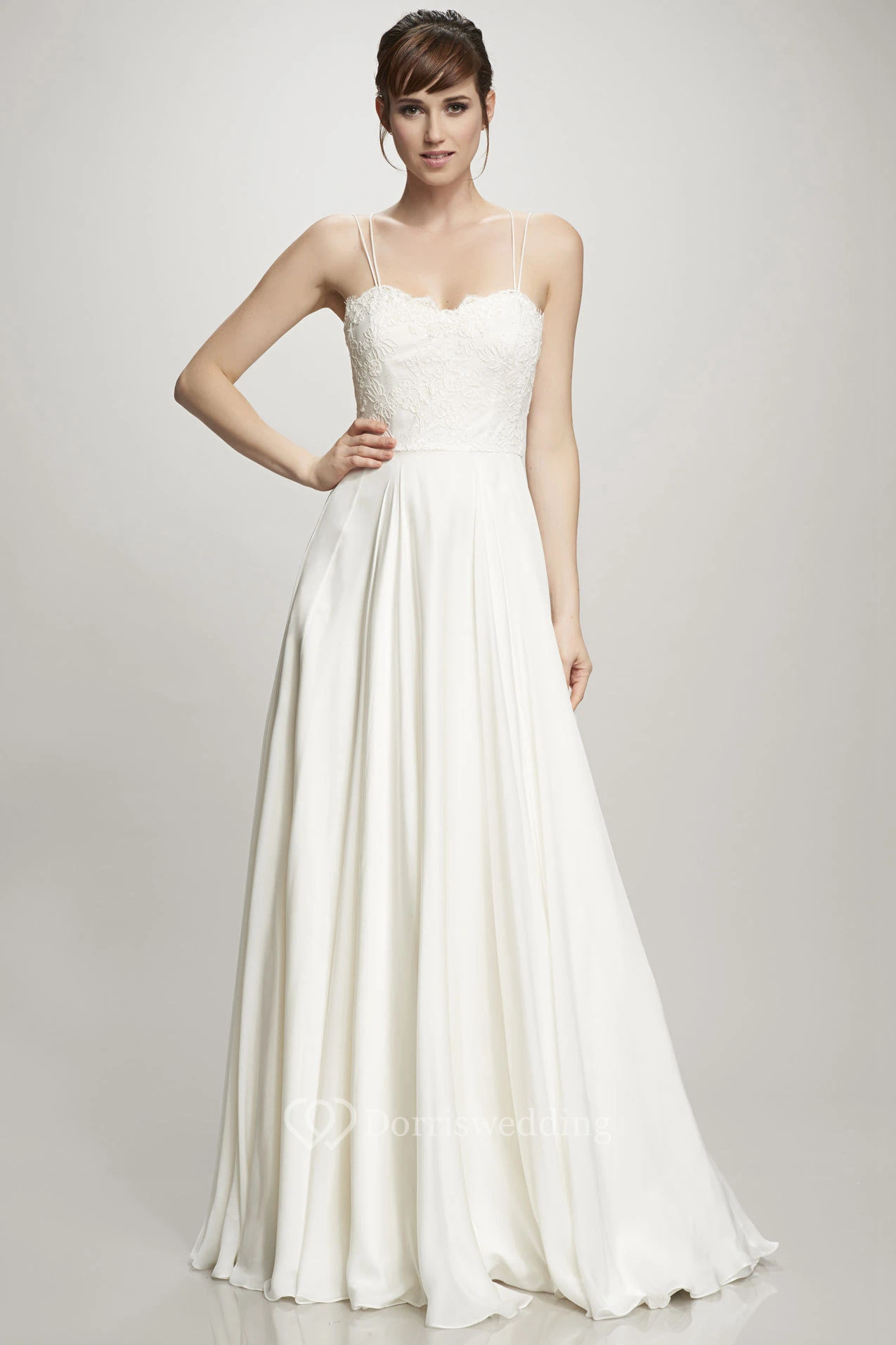 Spaghetti Long Pleated Chiffon Wedding Dress With Appliques