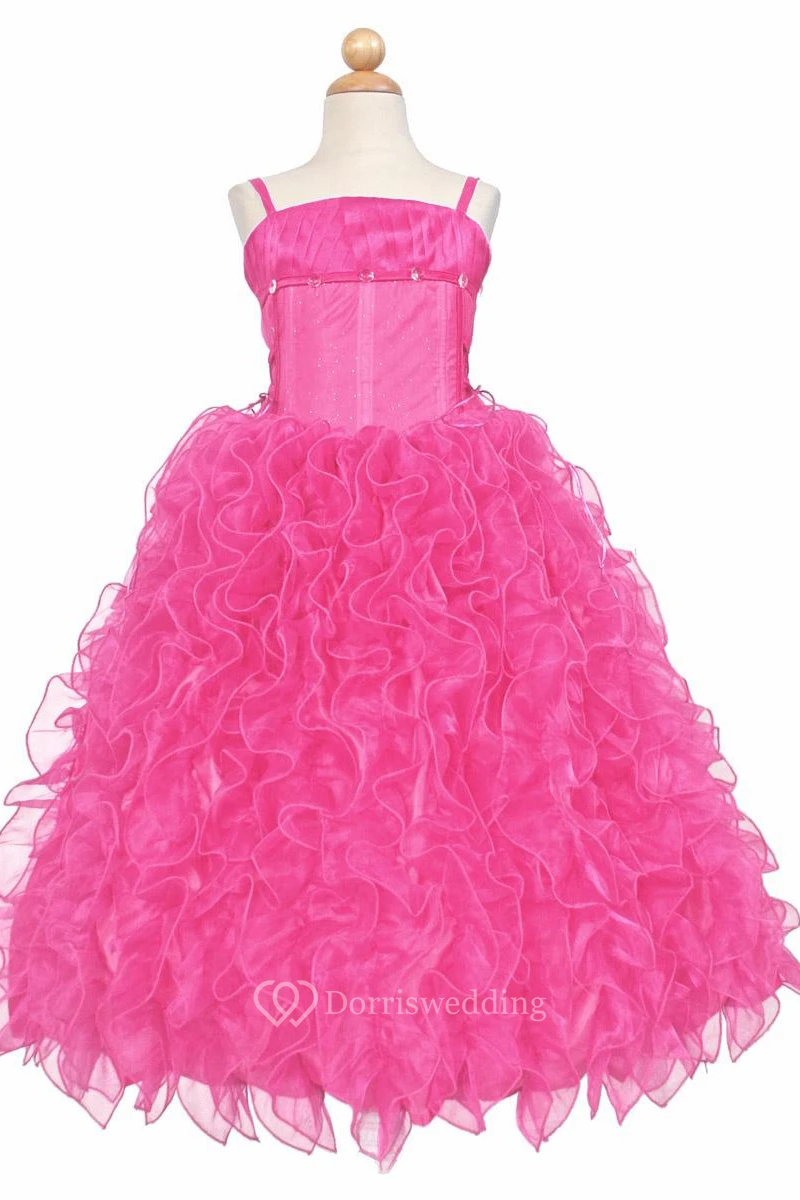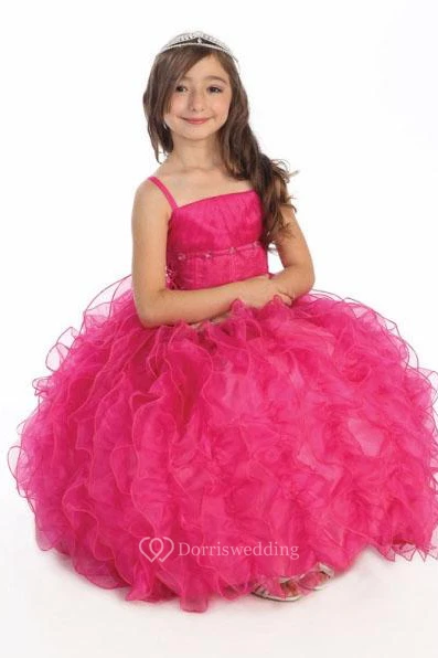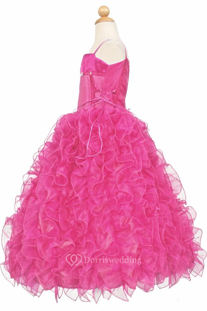 Spaghetti Long Tiered Ruffled Lace&Organza Flower Girl Dress