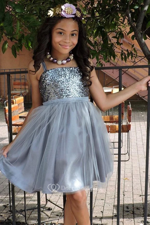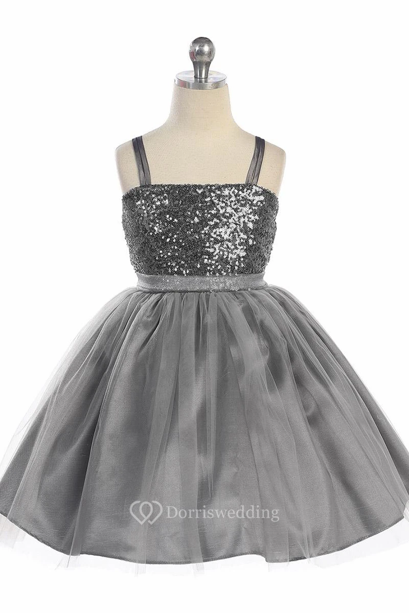 Spaghetti Midi Tulle&Sequins Flower Girl Dress