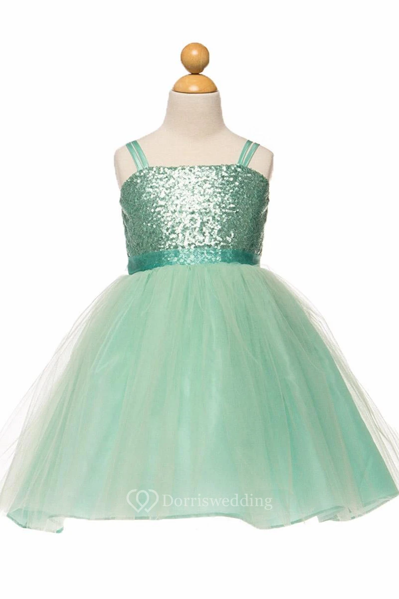Spaghetti Midi Tulle&Sequins Flower Girl Dress