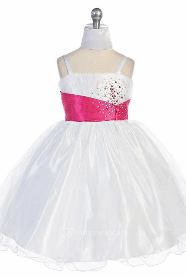 Spaghetti Mini Cap-Sleeve Pleated Tulle Flower Girl Dress With Cape