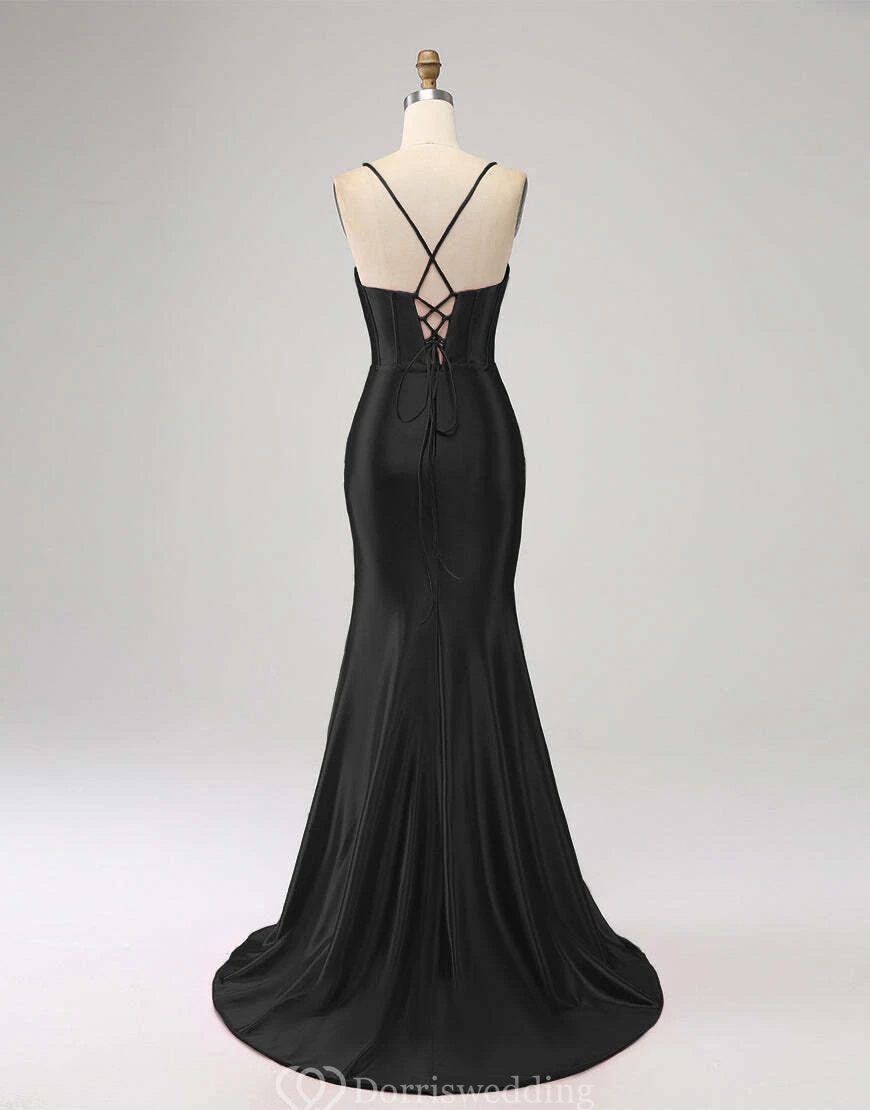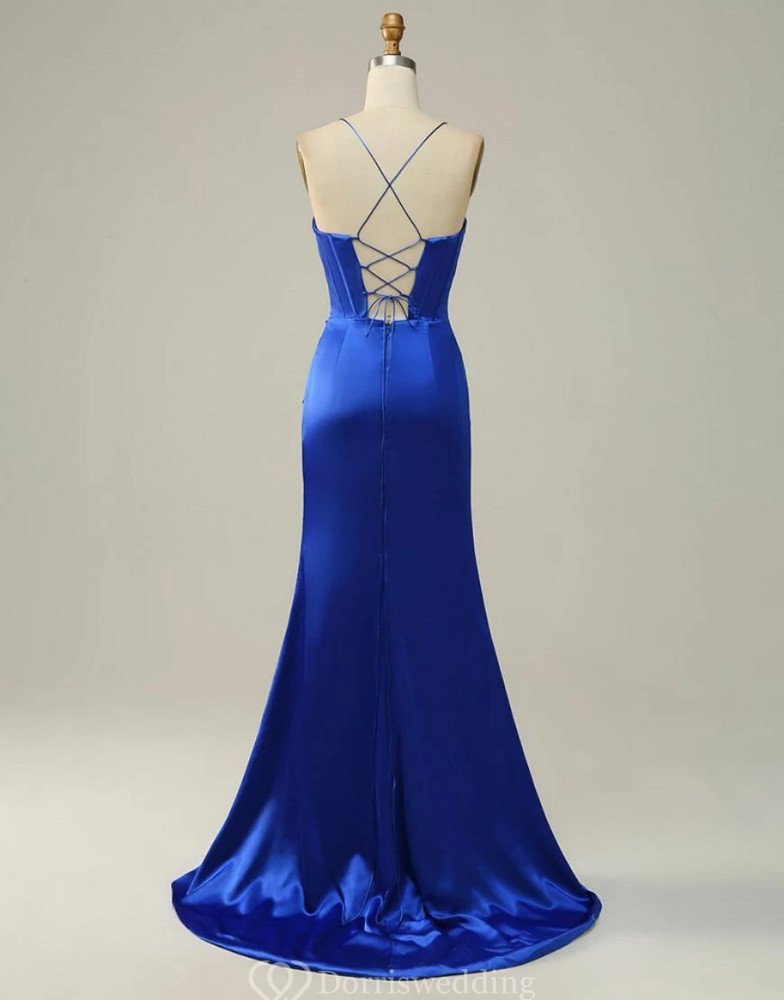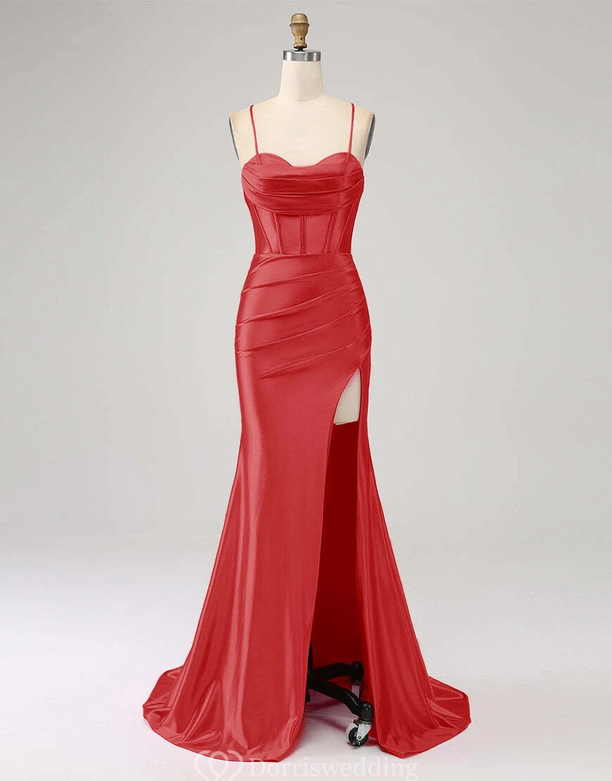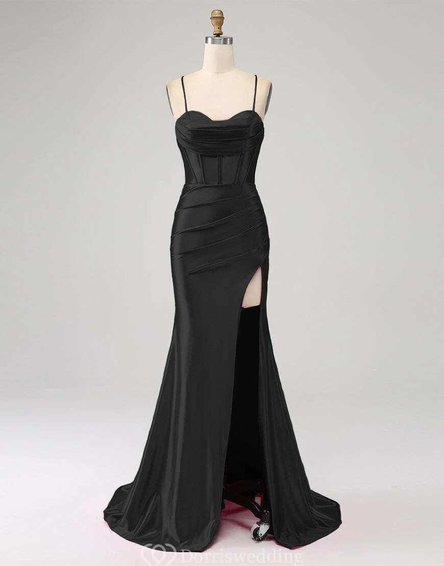 Spaghetti Ruched Front Split Sheath Simple Dress